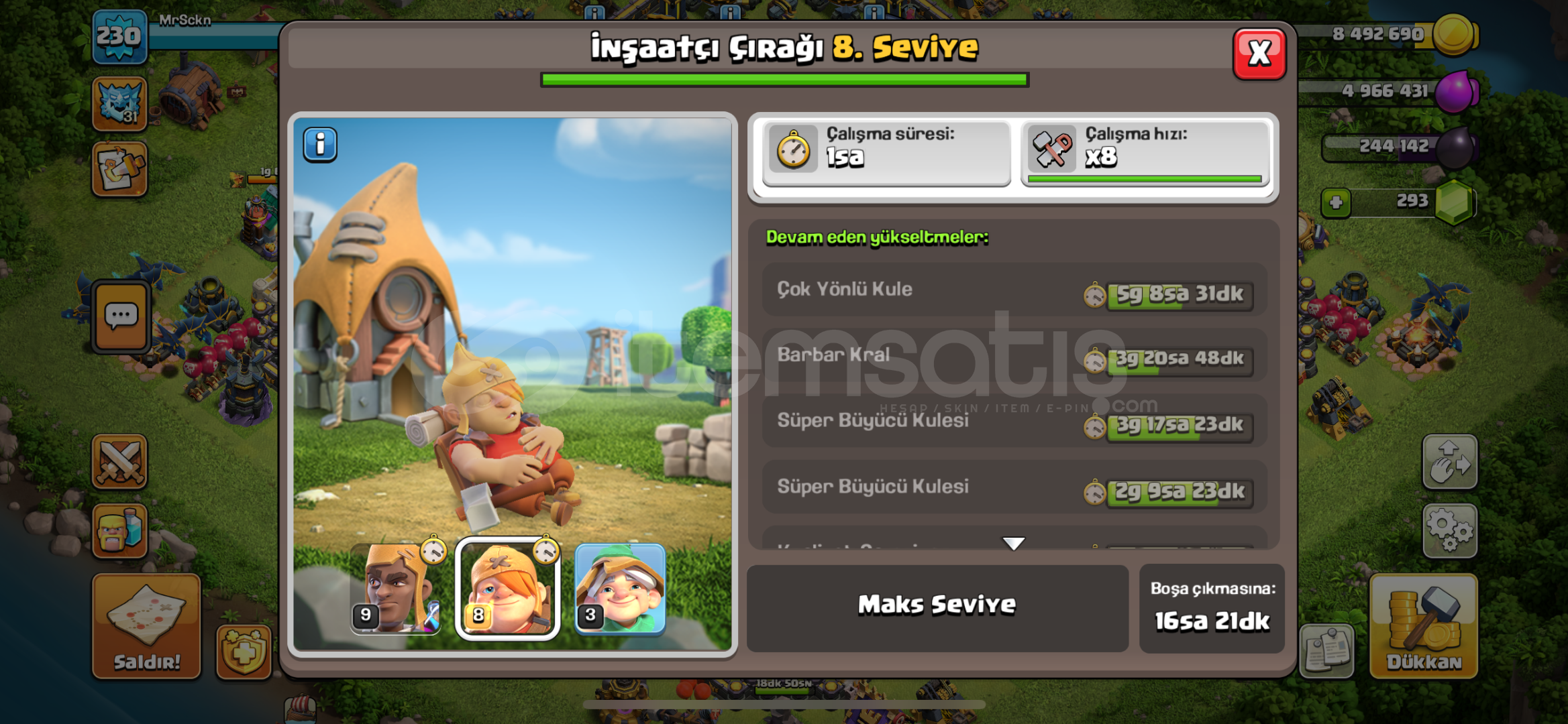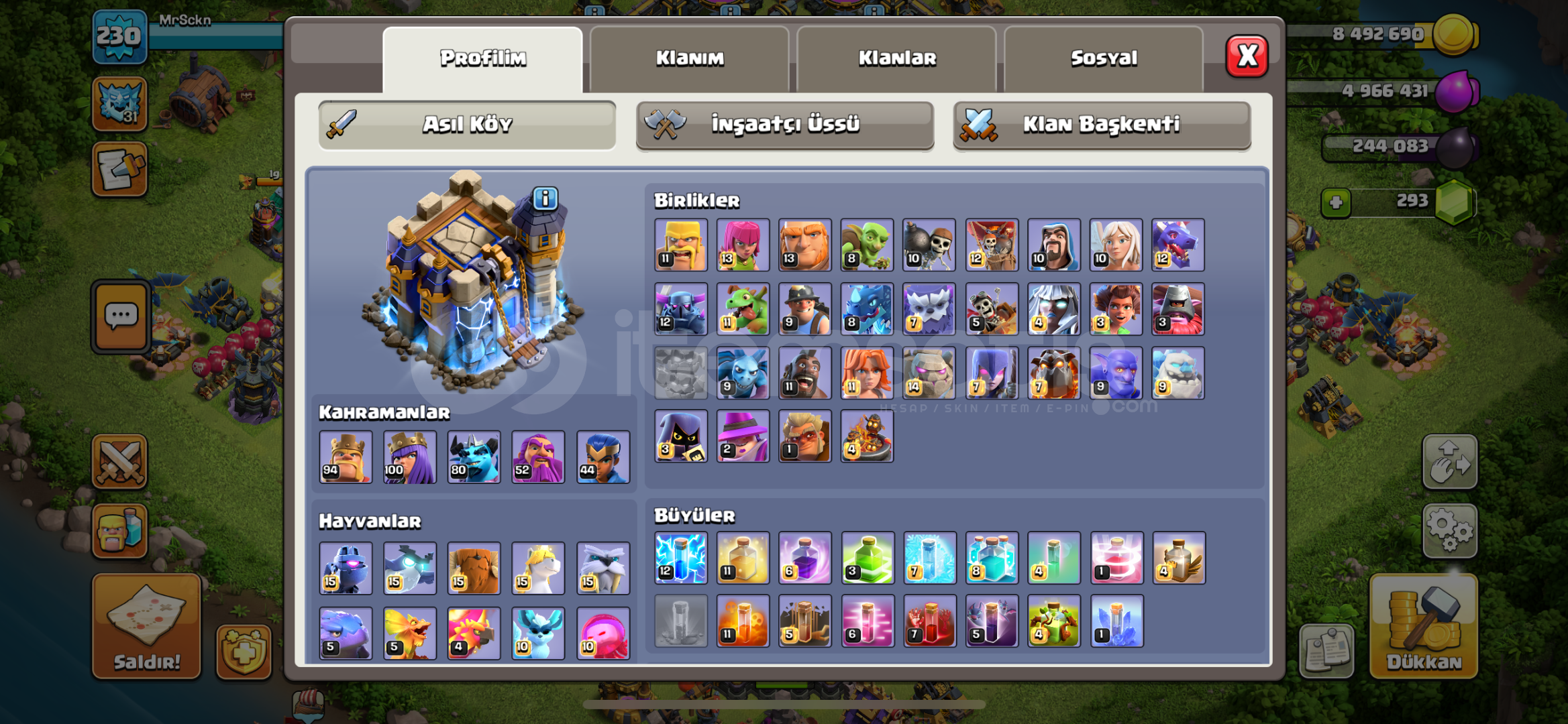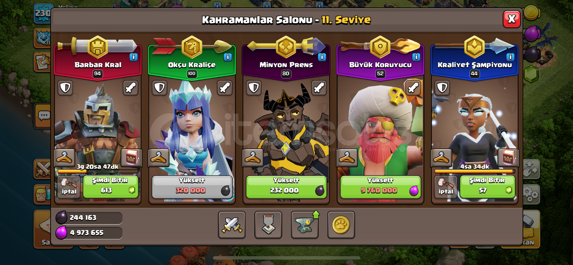 son guncellemede 18 seviyeye gecmis 17ye gore tum savunmalar ve duvarlar nerdeyse full sampiyonlar yuksek seviyede 17 bb gore tum ordu fullayni superc...