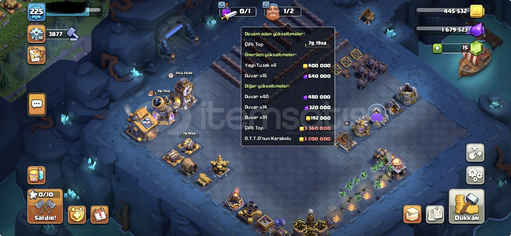 18 th 225 seviye coc ve 9700k cr hesabı !!!