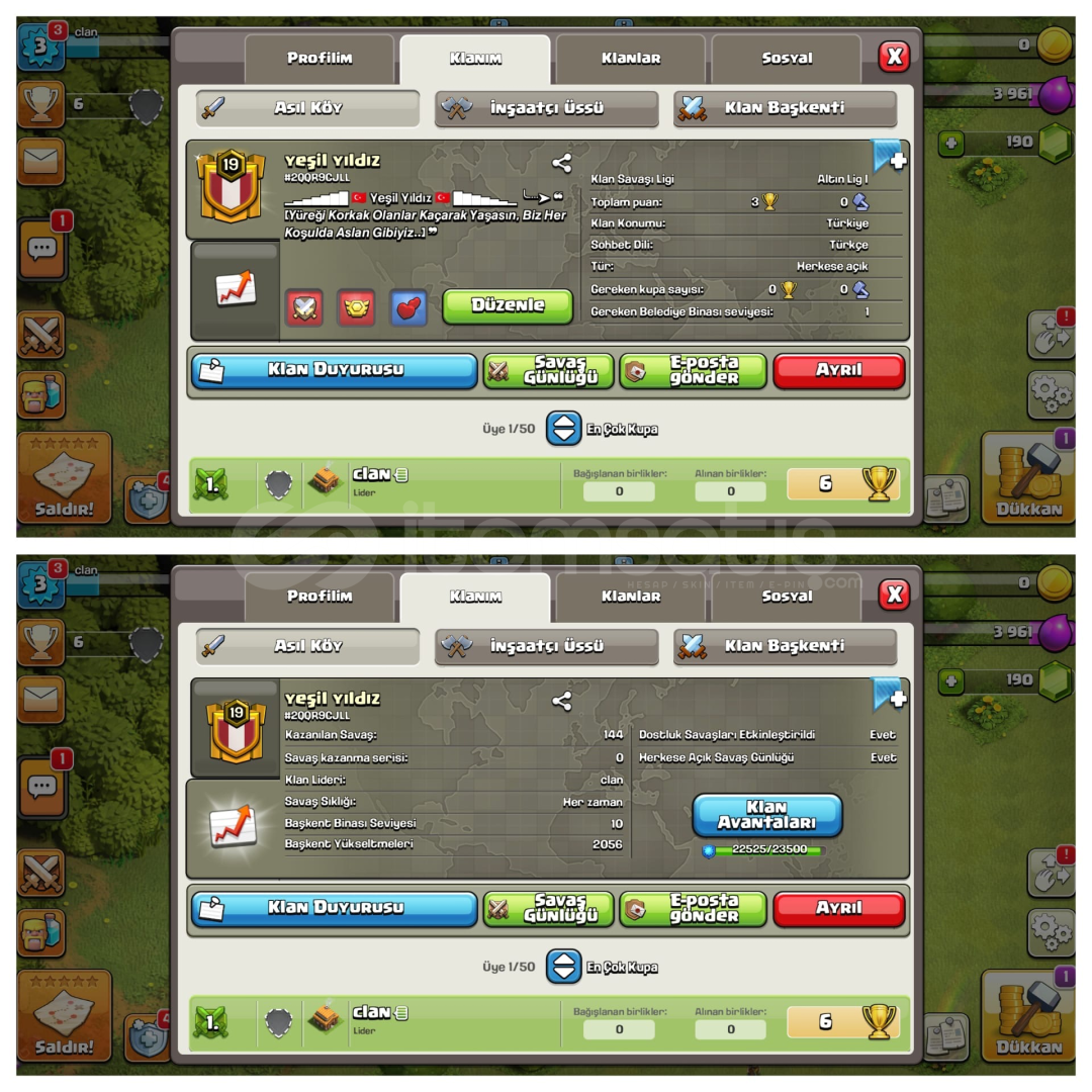 > Harika isimli klan ( Yeşil yıldız)> 20 levele yaklaşık 200 xp var> başkent 10Kimlik onaylı güvenilir satıcıdan.✅fiyat sondur ❗️