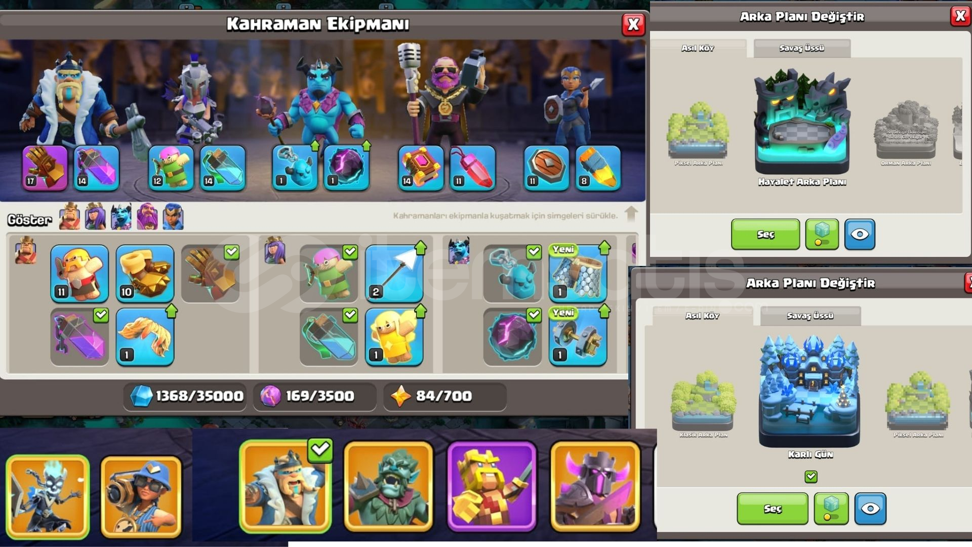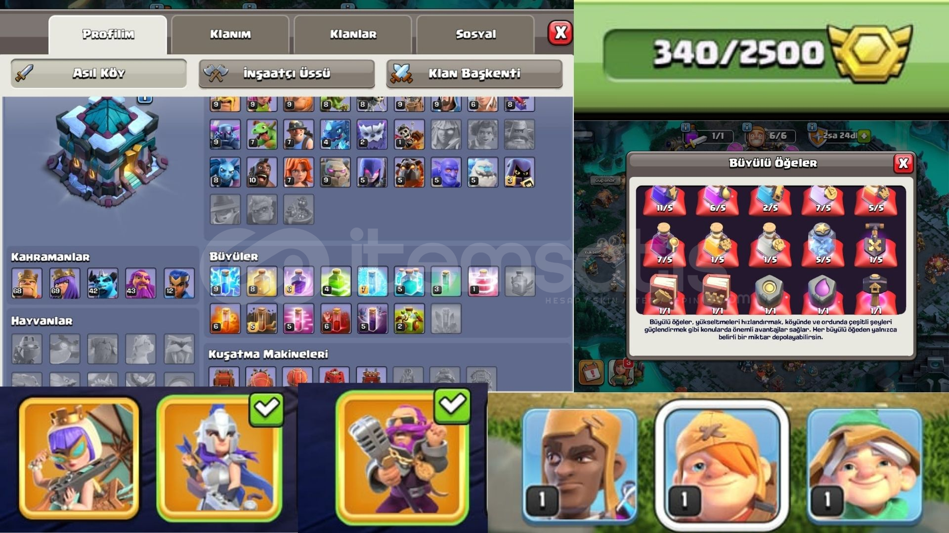 2 ARKA PLAN , 9 ADET SKİN VARDIR.EKİPMANLAR ORTA SEVİYE , BÜYÜLÜ ÖĞELER DOLU DOLUDUR.KAHRAMAN SEVİYELERİ NERDEYSE MAX.BÜTÜN ÇIRAKLAR AÇIK , 340 LİG MADALYASI , 6 İNŞAATÇI , 1150 TAŞ.MAİL DEĞİŞİMİ AKTİF OLASI SORUNDA 0 MAİL İLE TESLİM EDİLECEKTİR.HESAPLAR 100/100 GÜVENCE İLE TESLİM EDİLİR BİR SORUNUZ OLURSA S...