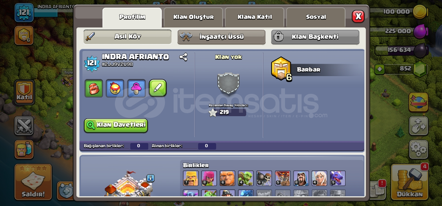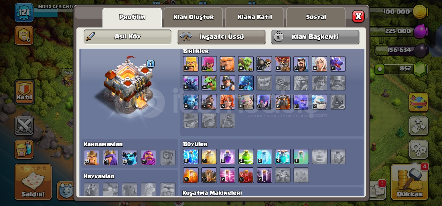 2 skin 851 tas 121lvl coc