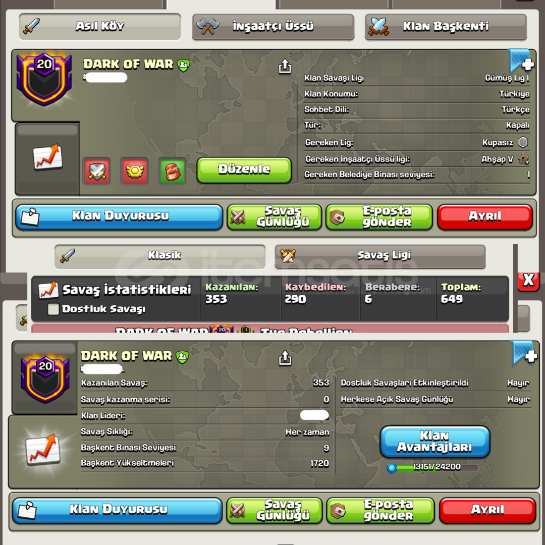 🏰 CLASH OF CLANS - %100 GÜVENLİ & ANINDA TESLİMAT ⚡⭐ 10/10 Değerlendirme Puanı | Memnuniyet Garantili!🔥 NEDEN BİZDEN ALMALISINIZ?Yüzlerce başarılı satış ve müşteri yorumuyla en güvenilir Clash of Clans portföyünü sunuyoruz. Her bütçeye uygun köy ve klan seçeneklerimiz mevcuttur.📩 Sorularınız mı var? Çekinmeden mesaj atab...