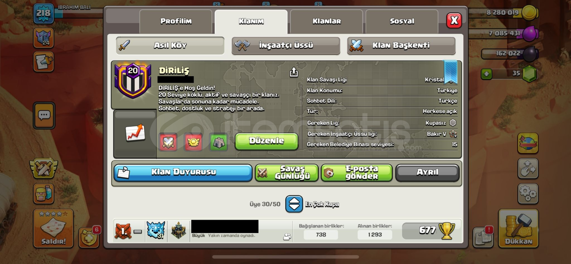 Klanımız 20 LeveldirBaşkentte herşey son seviyedirKlan ligi Kristal ll dir.DAHA İYİSİNİ BULAMAZSIN FIRSAT KLANI🛡️ Bali Shop Güvencesi• Tüm ürünlerimiz orijinaldir ve kalıcı kullanım garantisi altındadır.• Satın alma sonrası teknik destek ekibimiz 7/24 sizin yanınızdadır.• Müşteri memnuniyeti önceliğimizdir — her işlemde &#...