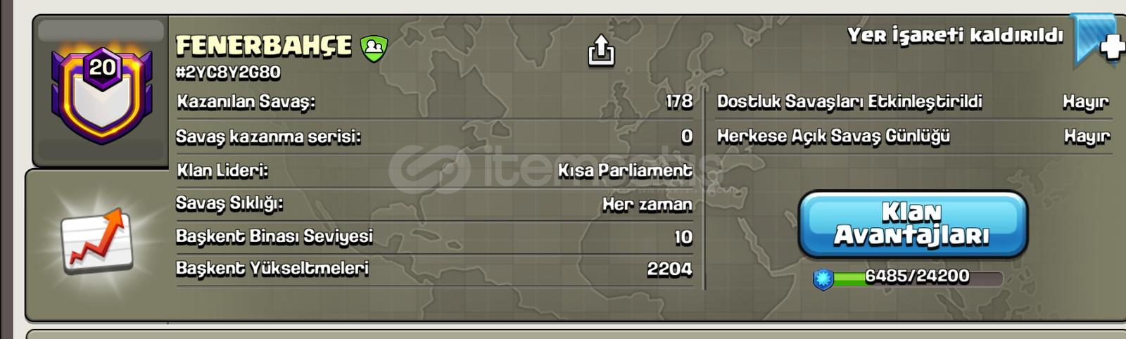 20 Seviye FENERBAHÇE Klanıteklifinizi yazabilirsiniz