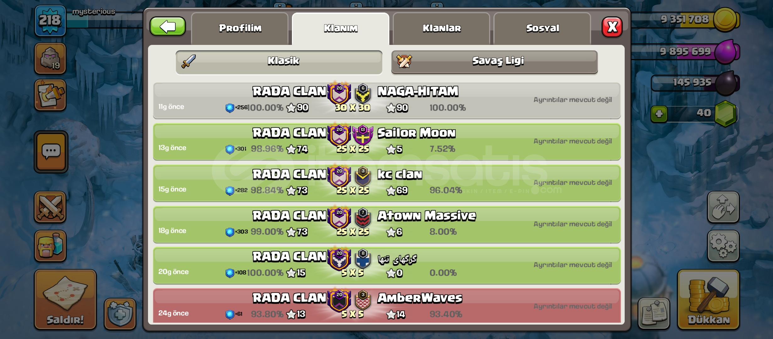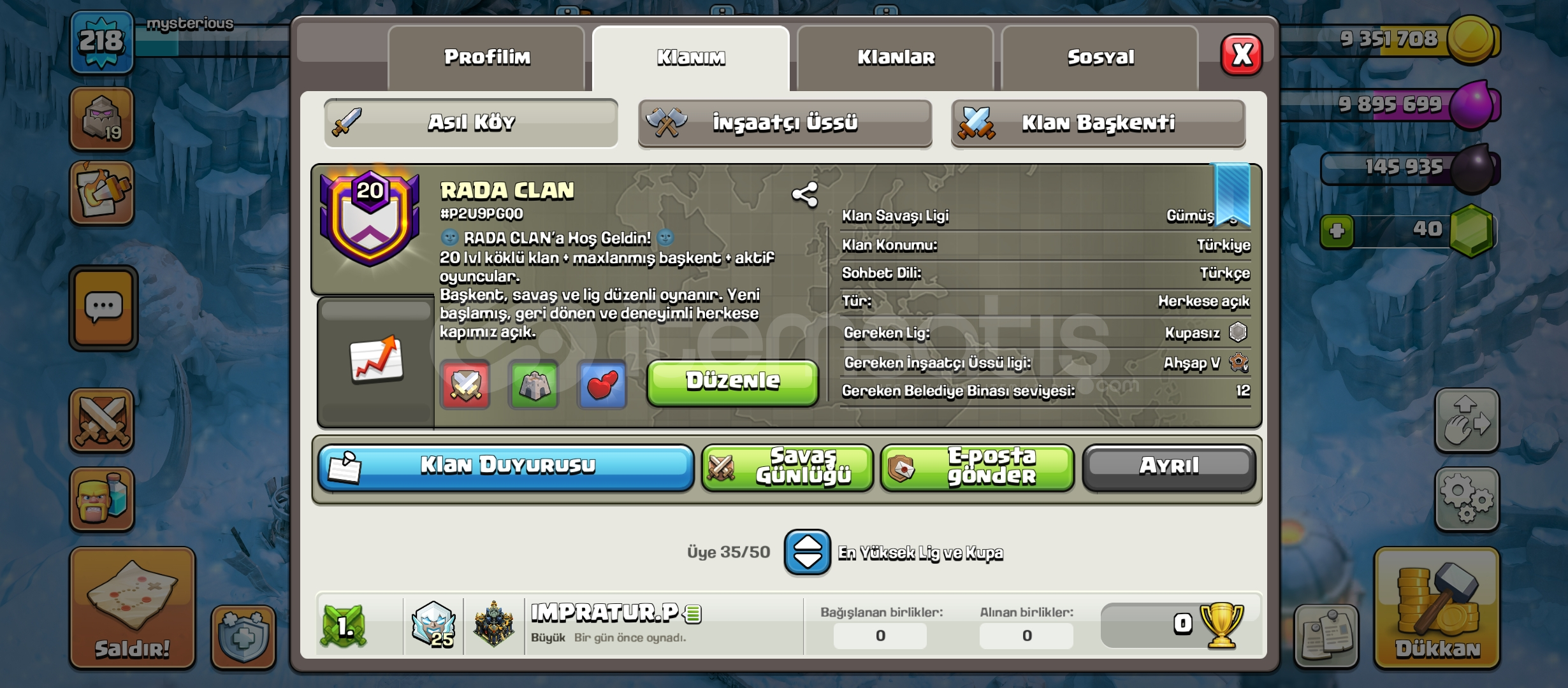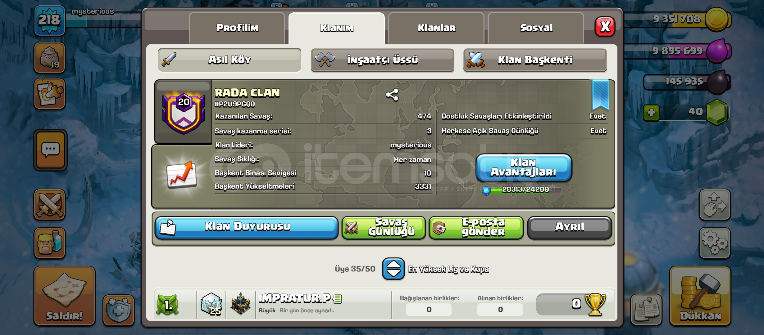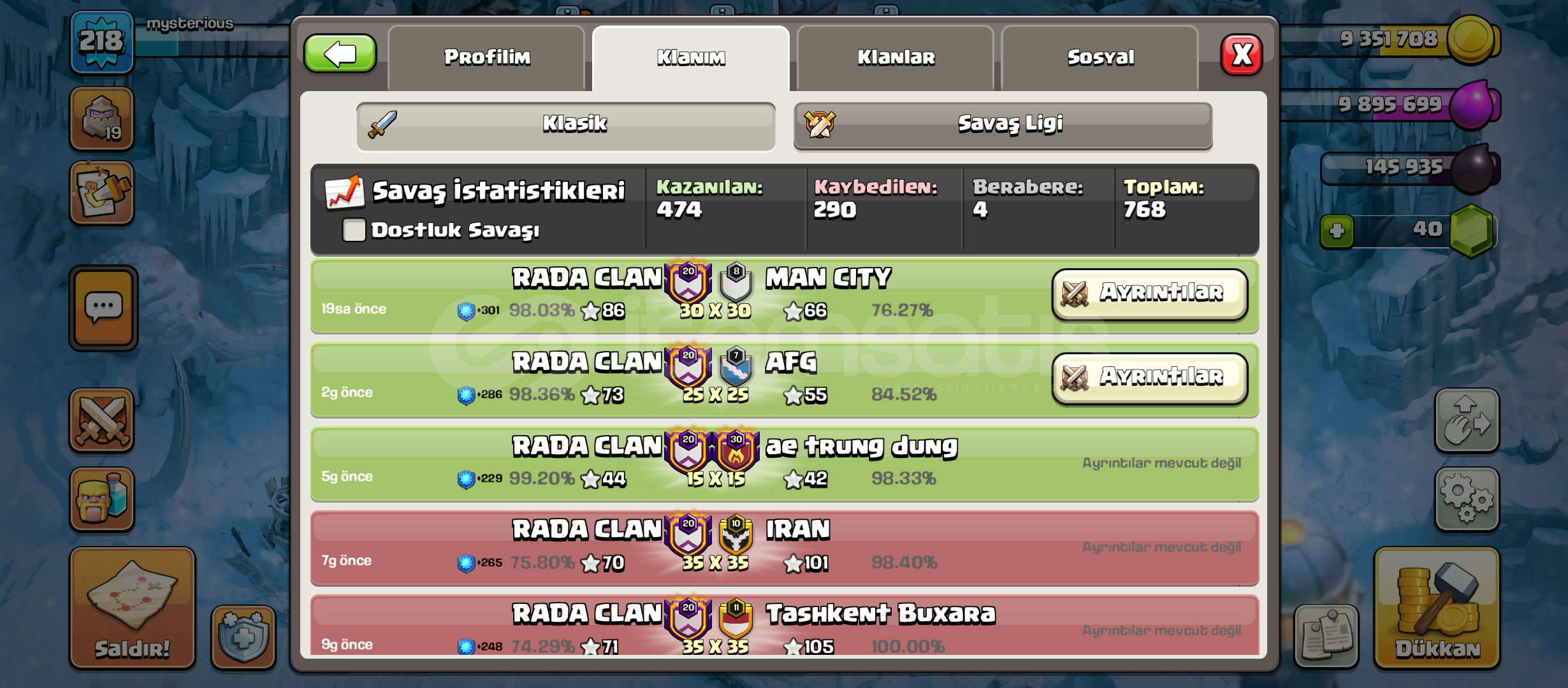 #P2U9PGQ0 Klanımız fotoğraflarda görüldüğü gibidir. Başkent fullenmiş ve İçerisinde aktif klan savaşları, başkent savaşları ve etkinlikler yapılmaktadır.-Satın alımdan sonra, mesaj kısmına klanı almak üzere geçireceğiniz hesabın ismini ve seviyesini yazmayı unutmayın-