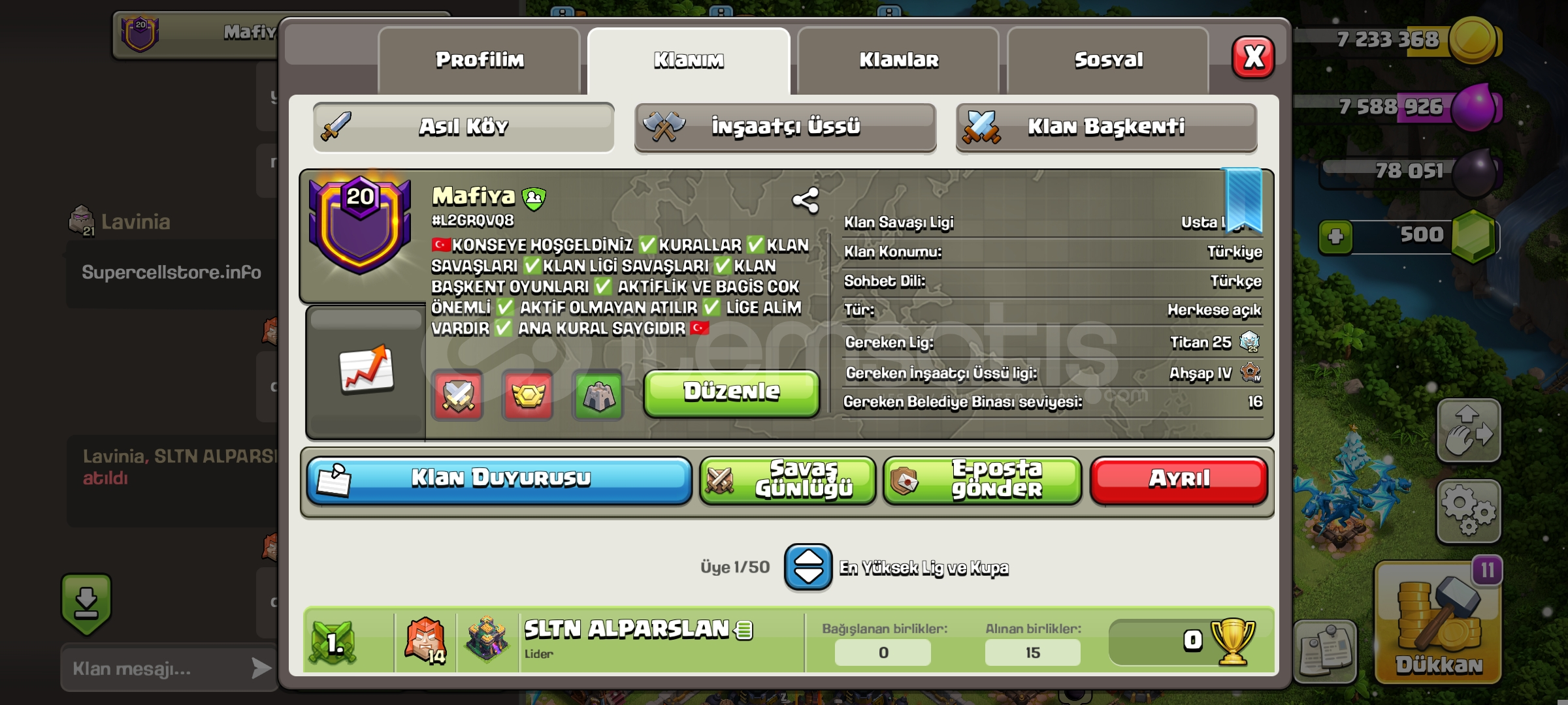 20 seviye mafiya klani konsey klani klan guzel baskent seviyesi 10 alicisina simdiden hayirli olsun