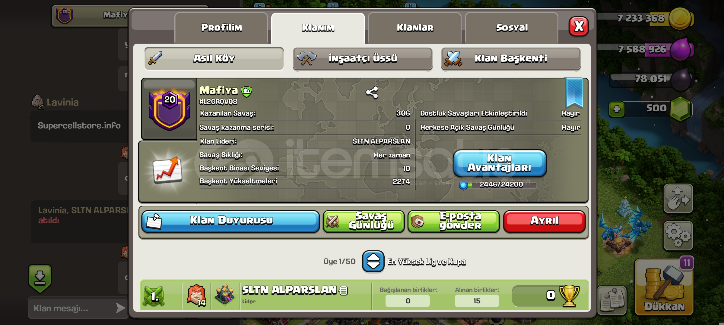 20 seviye MAFİYA KLANİ ACİL SATİLİK