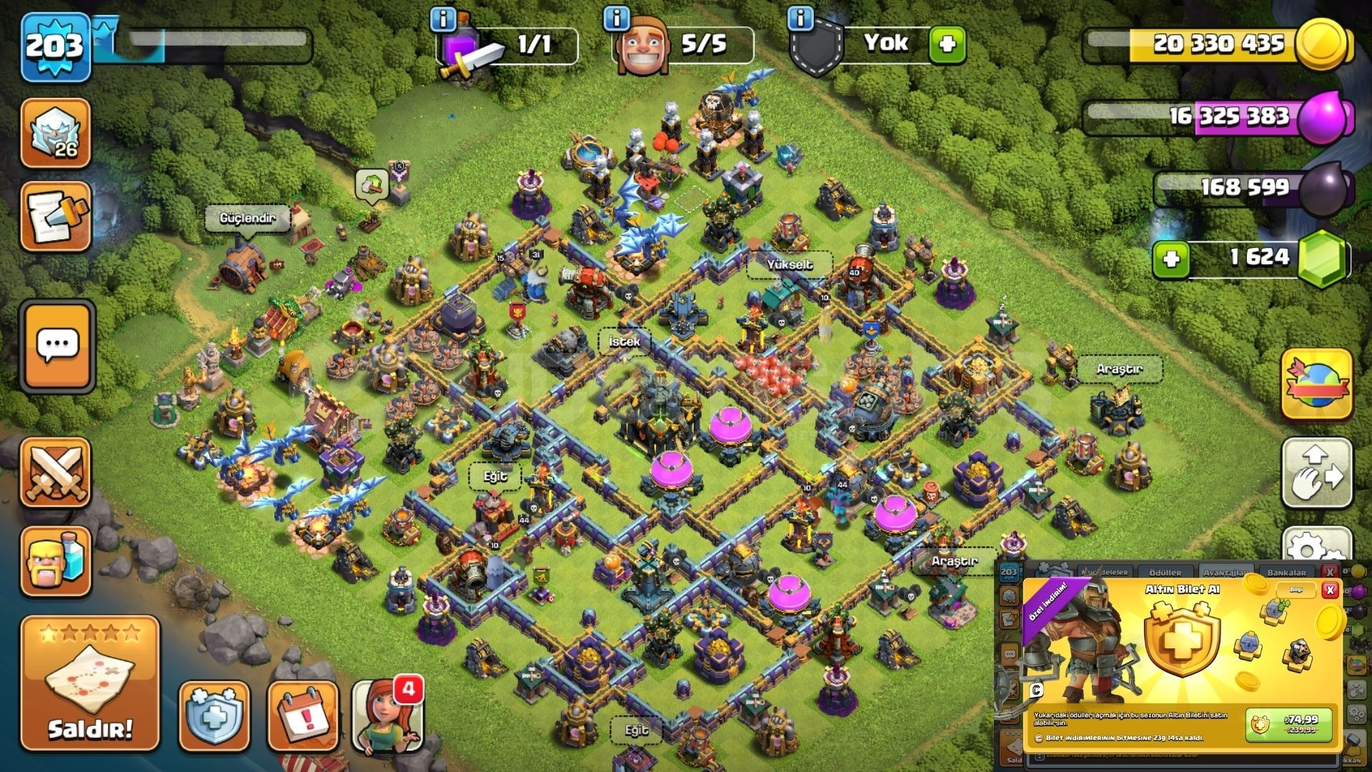 ŞAMPİYON 40 LEVELİNŞAATÇI ÜSSÜ SAĞLAMDIR.3 KOSTÜM , ALTIN BİLET İNDİRİMLİD...
