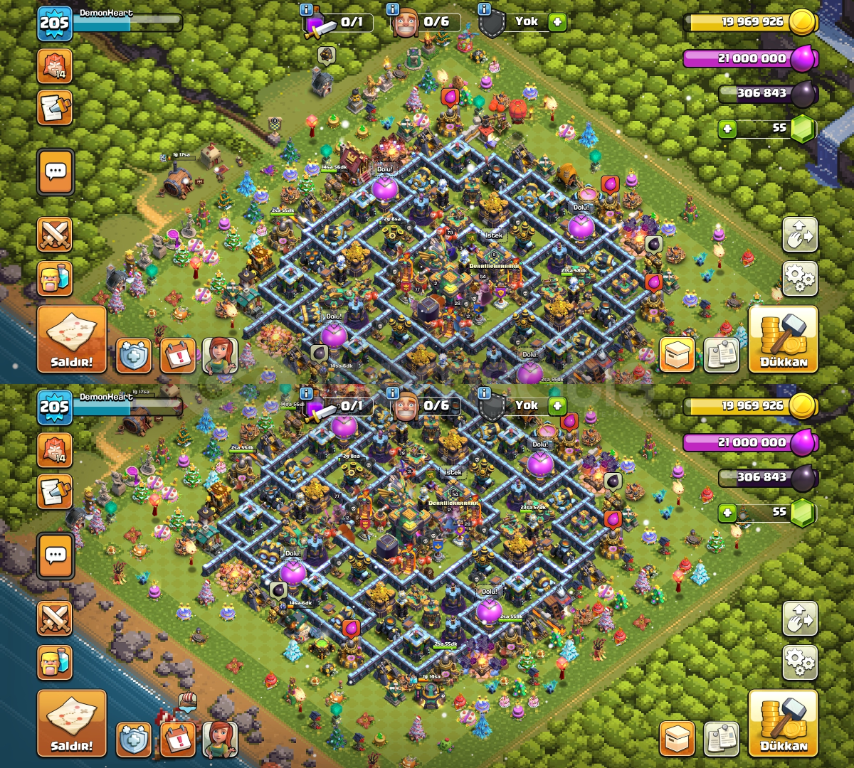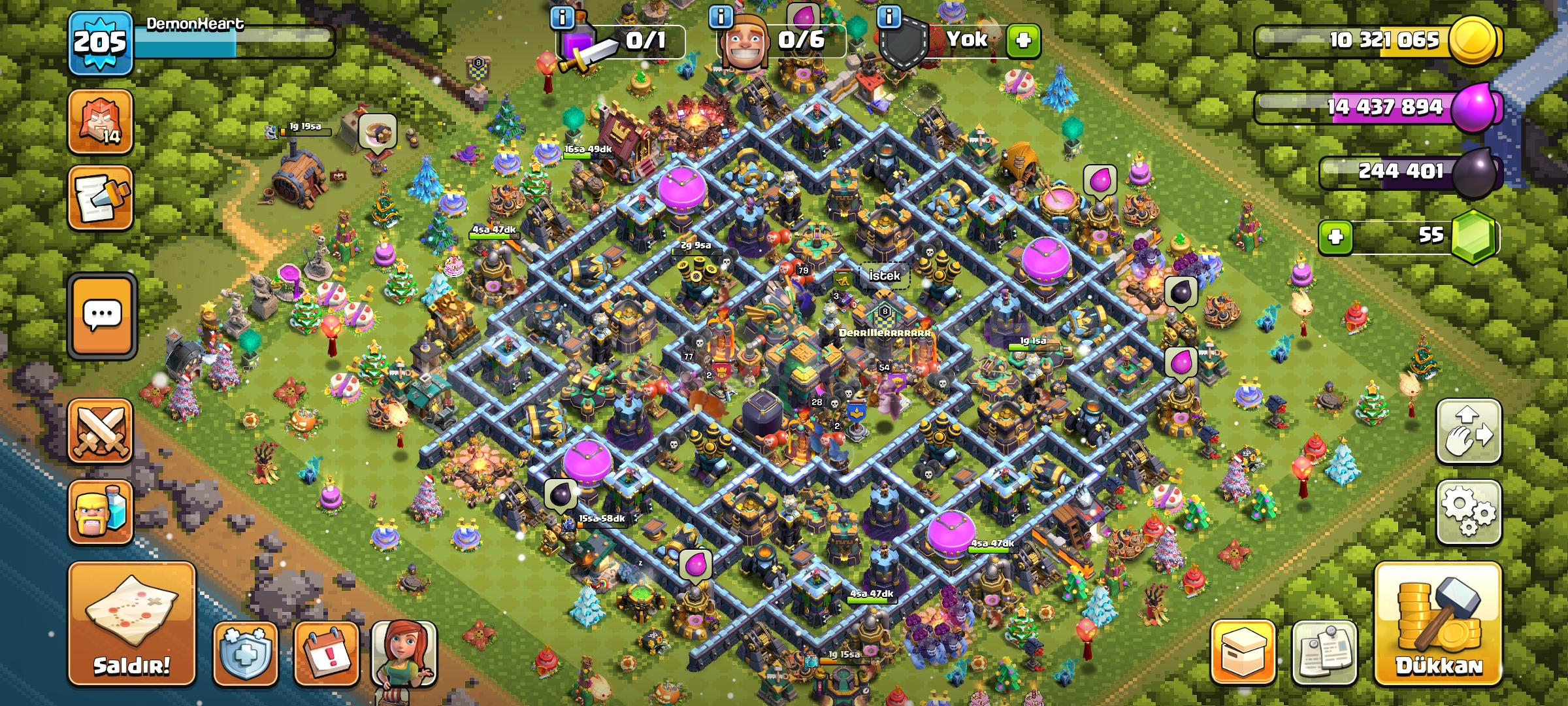 205 LEVEL, 4 DESTANSI EKİPMAN. MUHTEŞEM HERO SEVİYELERİ.150 ADETTEN FAZLA DEKOR VE 2018 DAHİL TÜM YILBAŞI AĞAÇLARI, YIL DÖNÜMÜ PASTALARI VARDIR, BAZILARI KÜREKLİDİR. FULL DOLU BÜYÜLÜ ÖĞELER. KOLEKSİYONLUK HESAP 8 SEVİYE KLAN HEDİYELİDİR. ÜCRETSİZ İSİM DEĞİŞTİRME VE YAN KÖY HERO SEVİYESİ SON 35 LEVELDİR. KORUMA YOKTUR VE ID ALINMAMIŞTIR.