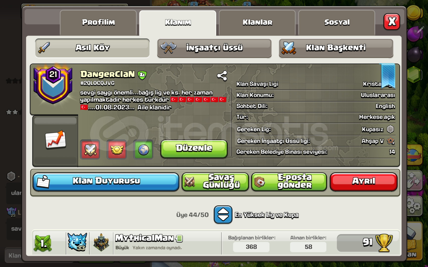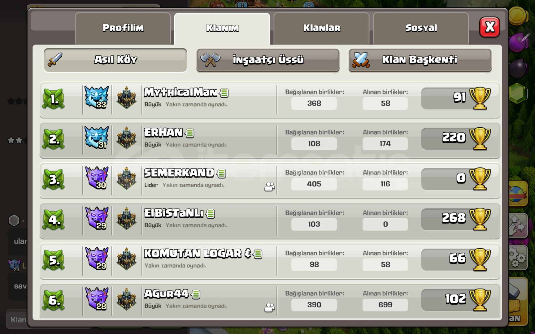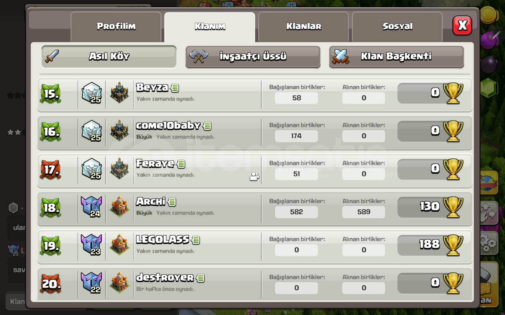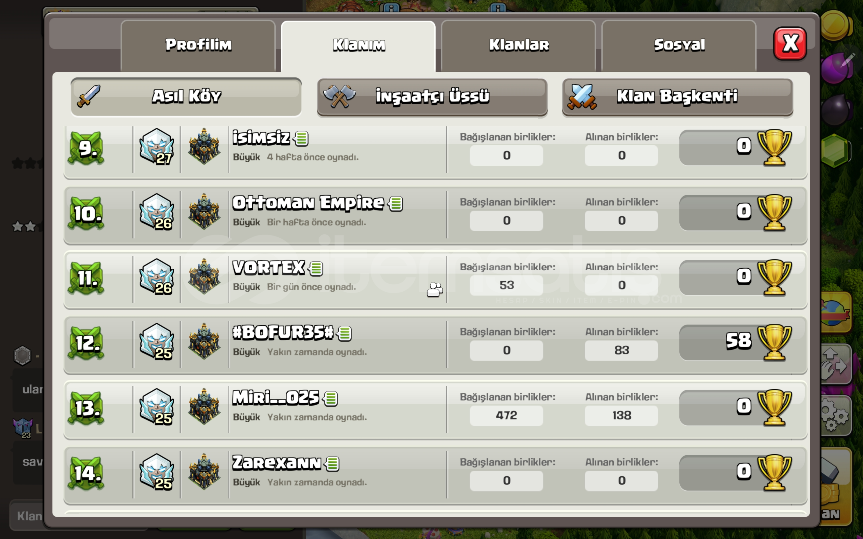 21 sv klan baskenti fulldur 10. Sv belediye baskent ve herseyi maxdir klan aktiftir ligde 2. Saglam klan aktif ve guclu 10+ full hesap vardir ve herkes aktiftir sadece 5000tl