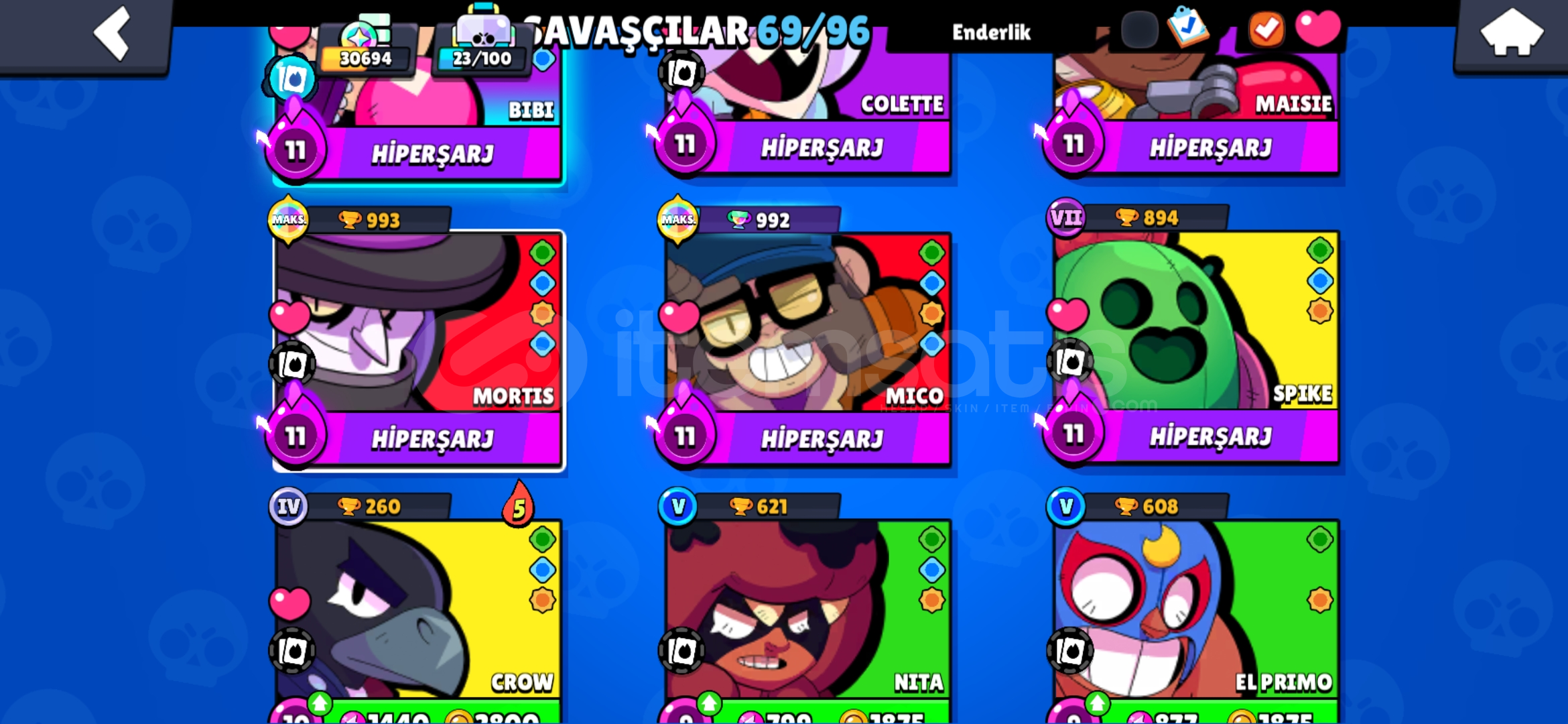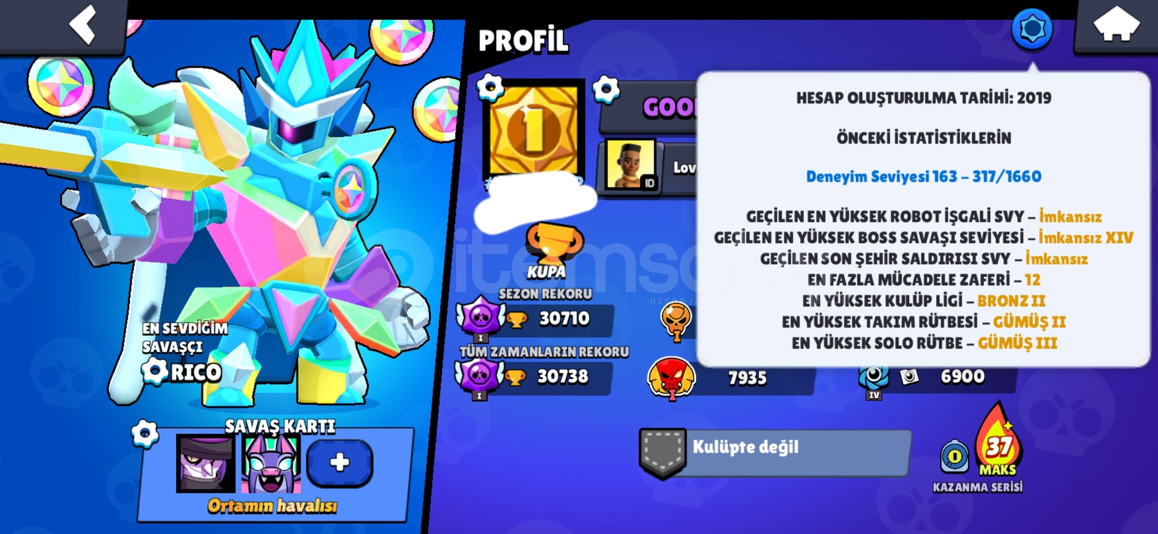 İlk sahibiyim 3k savaş yıldızlı max hesap + 12 hipersarj çoğu karekter max bs hesabi sorularını dmden sorabilirsiniz