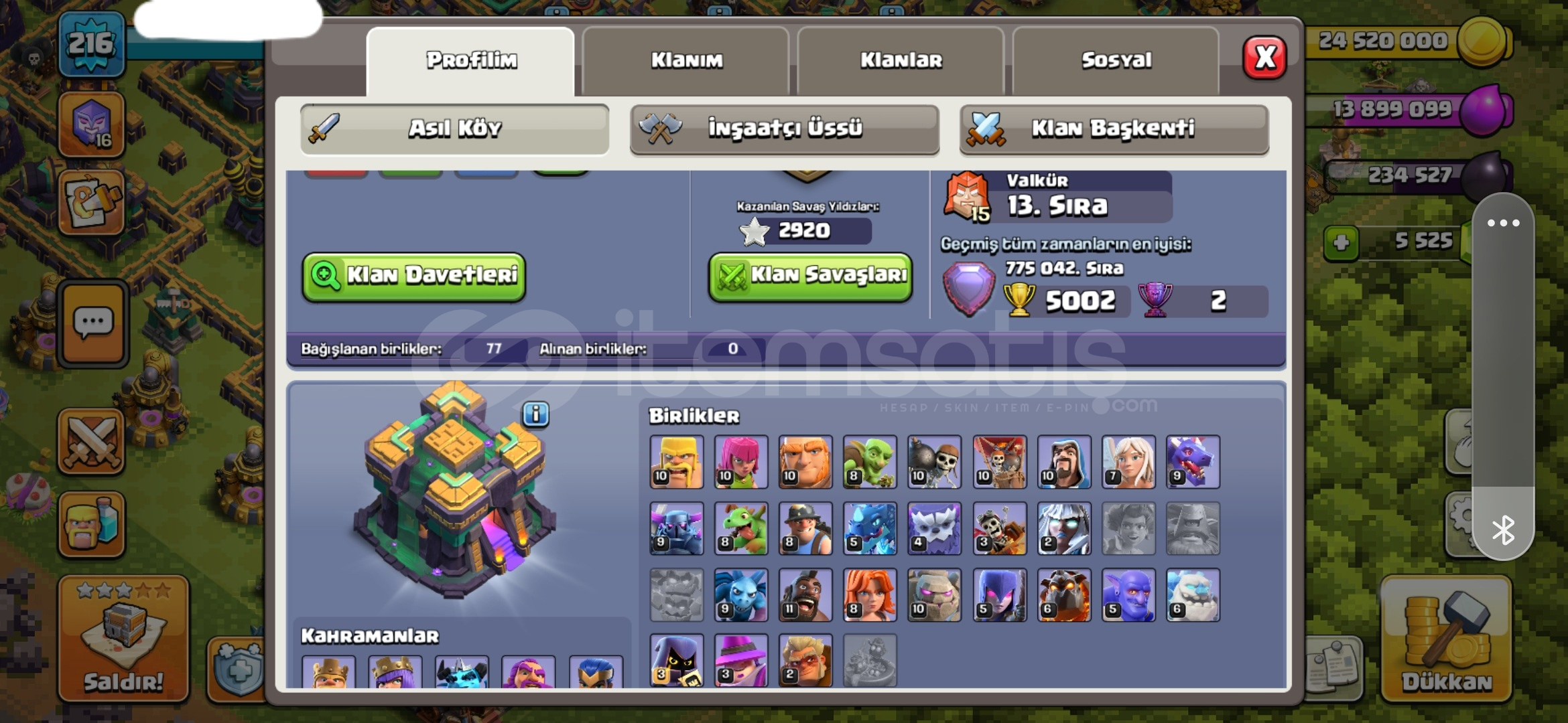 İlk sahibiyim 3k savaş yıldızlı max hesap + 12 hipersarj çoğu karekter max bs hesabi sorularını dmden s...