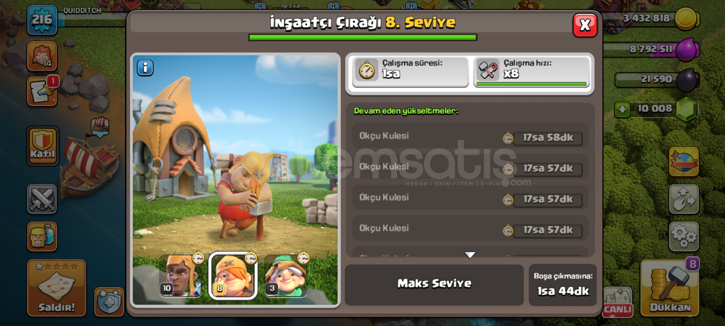 HESABIN İLK SAHIBIYIM OYUNA VAKIT AYIRAMADIGIM ICIN SATILIK216 LEVEL10K TAŞLIBARBAR KRAL 2 EFSANEVI KOSTUMLUDIGER DETAYLAR FOTOLARDA MEVCUTAKLINIZA TAKILANI SORABILIRSINIZSIZIN VERECEGINIZ MAILE SUPERCELL ID YOLU ILE AKTARILIR