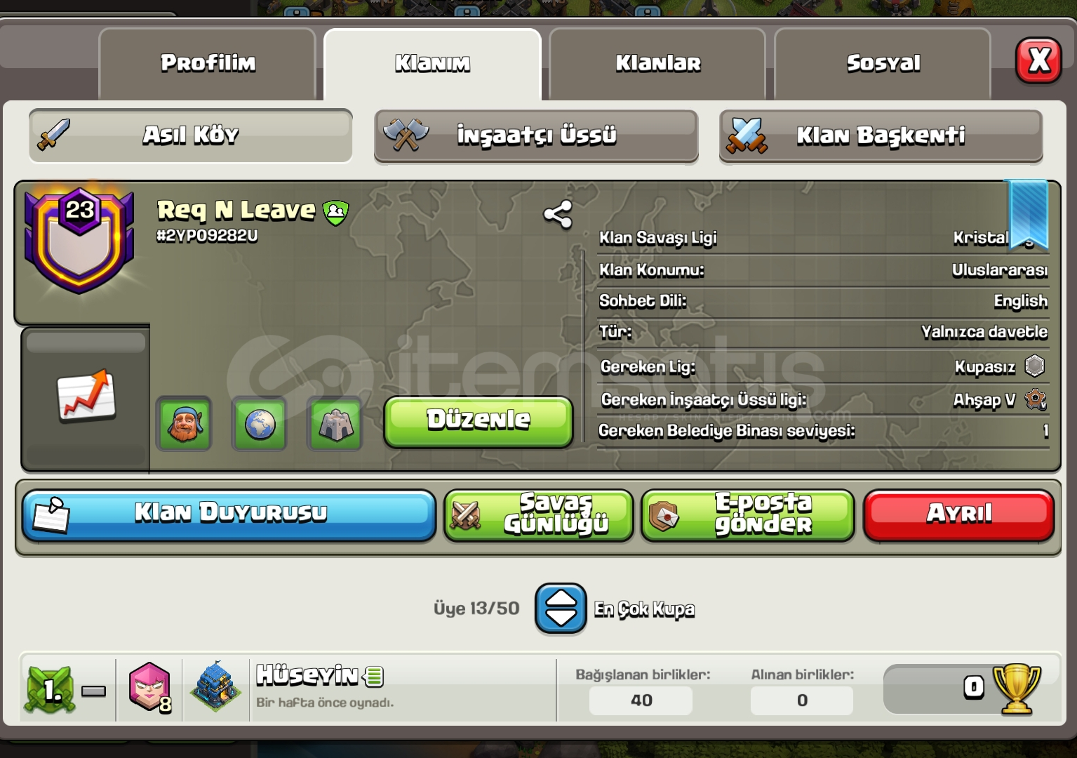 Orjinal 23 Level Req N Leave İsimli klan , Aklınıza takılan şeyleri sorabilirsiniz.
