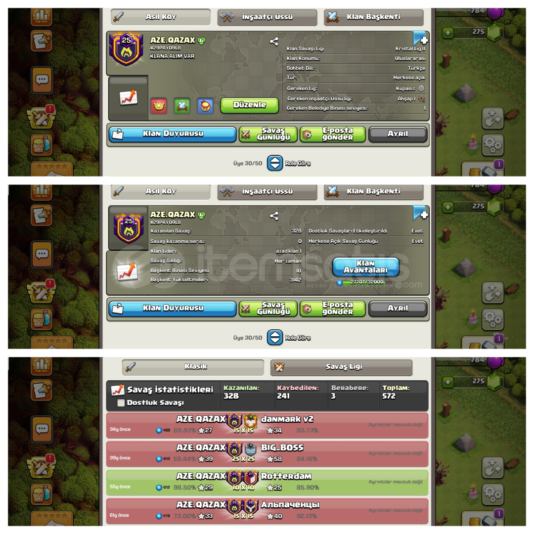 10/10 DEĞERLENDİRME PUANIAÇIKLAMAYI LÜTFEN SONUNA KADAR OKUYUNUZ !HESABIN EK ÖZELLİKLERİ ⚡️ ✨ 26 AZ KALMIŞ• AZE.QAZAX• Eşi Benzeri Yok !• Harika Savaş Günlüğü• Kristal Lig lI• Başkent Seviyesi 10• Başkent Yükseltmes 3124• Alıcısına Hayırlı Olsun- Her Zaman En İyi Şekilde Hizmet Vermeye Çalışıyoruz. A...