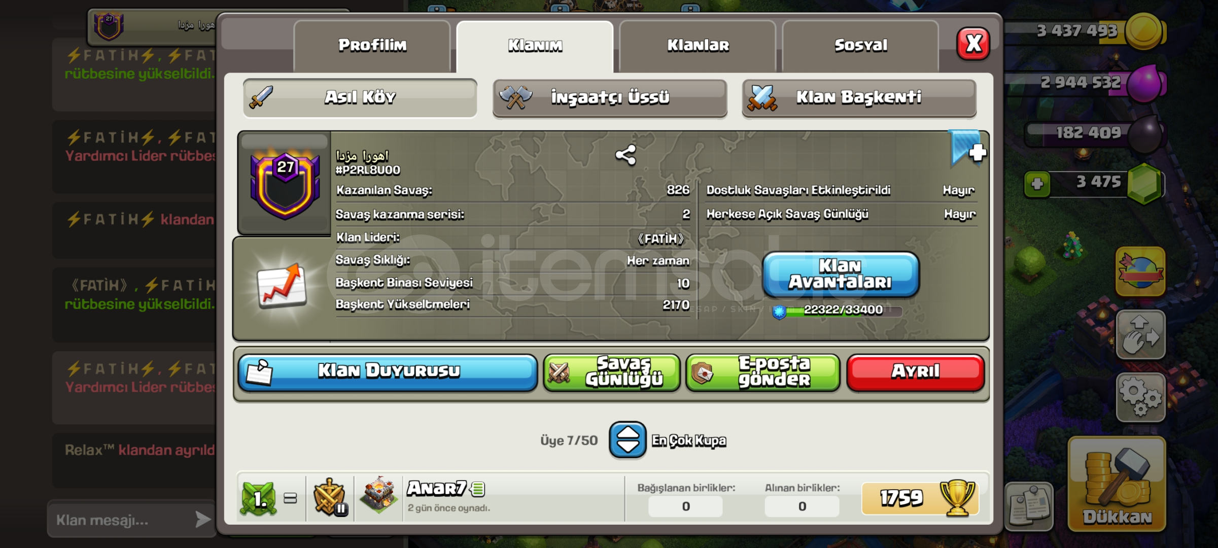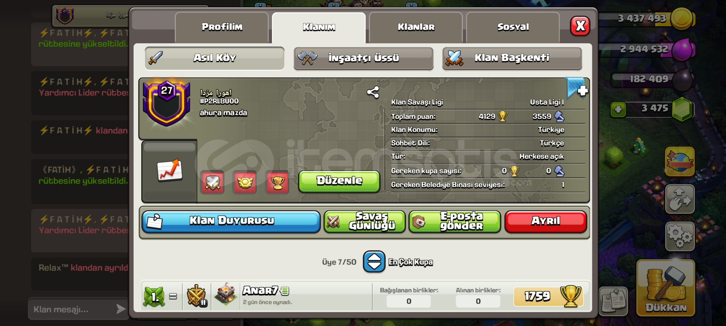 Başkent mukemmmel aktif klandir giren çıkanı çoktur ligi usta 1 eğer klanın ismi dinle alakalıdır oyunu bilen bir kişi ismini değiştirebilir .