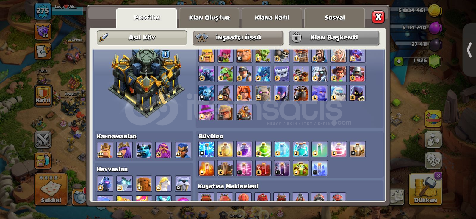 merhaba hesabim satiliktir 275 level esi benzeri bulunmaz bi hesapdir alicisina simdiden hayirli ugurlu olsun