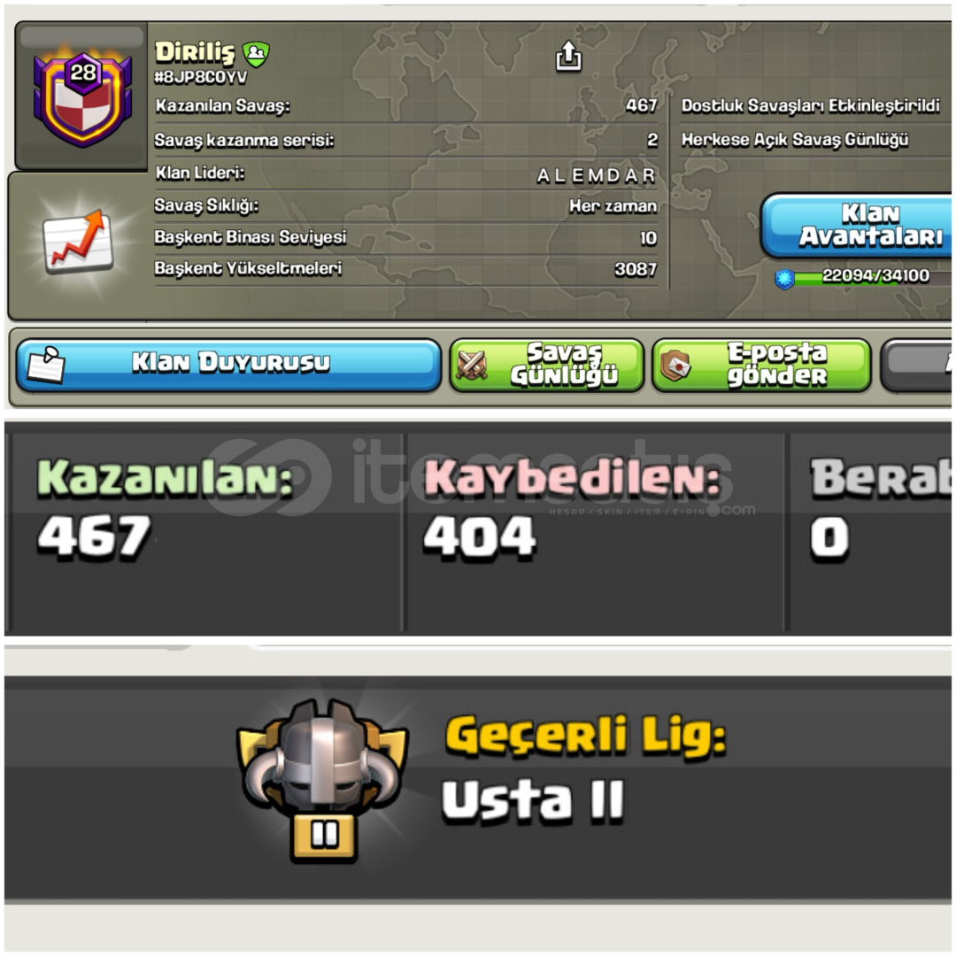 %100 MEMNUNİYET | 1 DAKİKADA TESLİM ⏳|10/10 DEĞERLENDİRME PUANIAÇIKLAMAYI LÜTFEN SONUNA KADAR OKUYUNUZ !HESABIN EK ÖZELLİKLERİ ⚡️ ✨19 Level Klanım • DİRİLİŞ 🇹🇷• Harika Savaş Günlüğü• Usta II Savaş Ligi• Başkent Seviyesi 10• Başkent Yükseltmesi 3087• Görsellerde Belirtilmiştir.• Al...