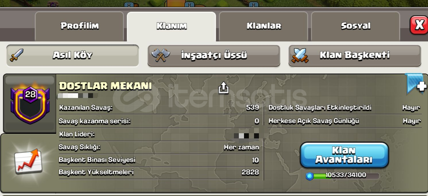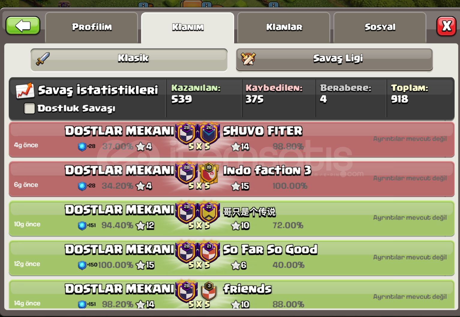 %100 MEMNUNİYET | 5DAKİKADA TESLİMAT10/10 DEĞERLENDİRME PUANIAÇIKLAMAYI LÜTFEN SONUNA KADAR OKUYUNUZ !HESABIN EK ÖZELLİKLERİ ⚡️ ✨29 LEVEL OLMAK ÜZERE• DOSTLAR MEKANI ÖZEL İSİM• Eşi Benzeri Yok !• Türkiye’nin En güzel isim olan Klanlarından birisi• Harika Savaş Günlüğü MUAZZAM• GÖREBİLECEGİNİZ EN GÜZEL...