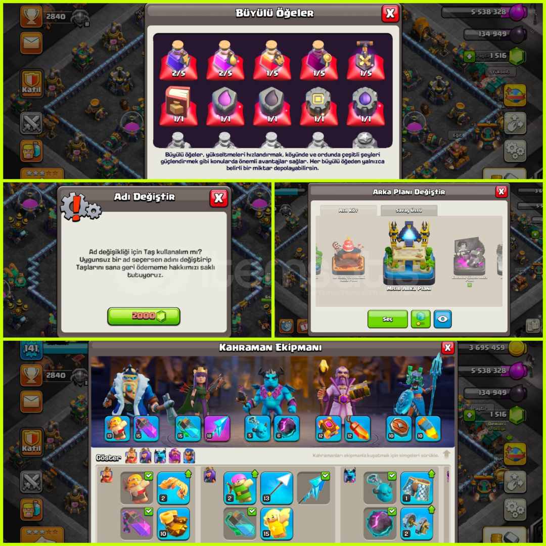 - HARİKA Hesaptır, Şimdiye Kadar Hesaba Girmiş Kim Varsa Herkesten Çıkış Yapacak Şekilde Sizin Vereceğiniz Maile Bağlanır.Detaylı Fotoğraf Ve Bilgi İçin İletişime Geçebilirsiniz.MAĞAZAMIZDA Kİ TÜM HESAPLAR İÇİN ÖMÜR BOYU GARANTİ!MAĞAZAMIZDA Kİ TÜM HESAPLARIN FİYATLARI SONDUR,Mağazamda Her Bütçeye Uygun Clash Of Cl...