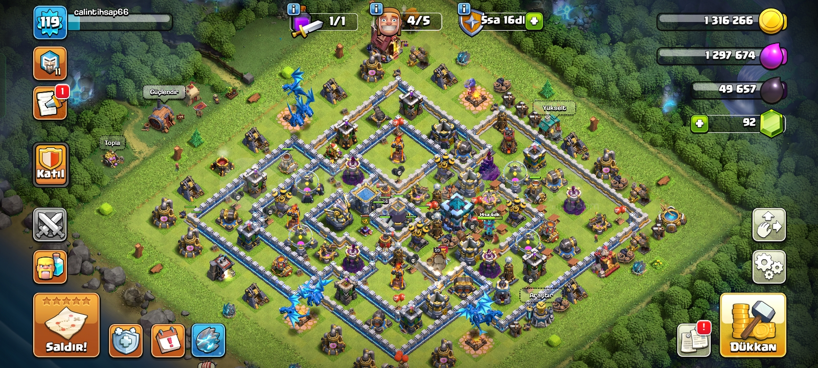 Clash of clans 500 taş elmas 13 belediye binası 120 seviye