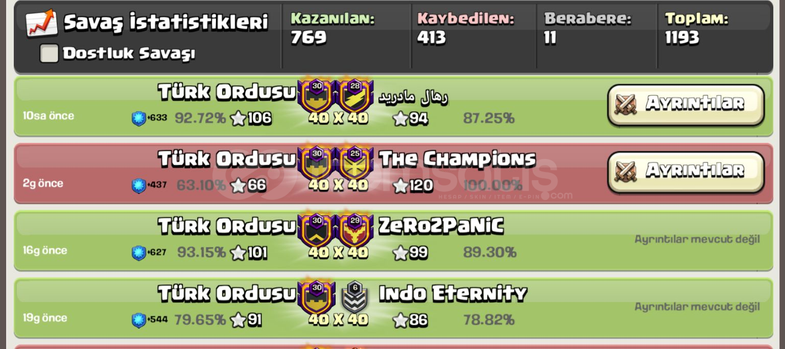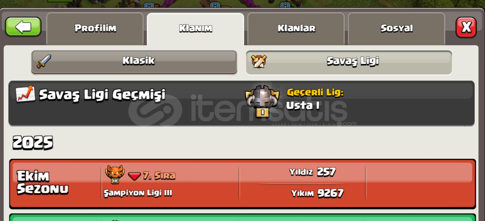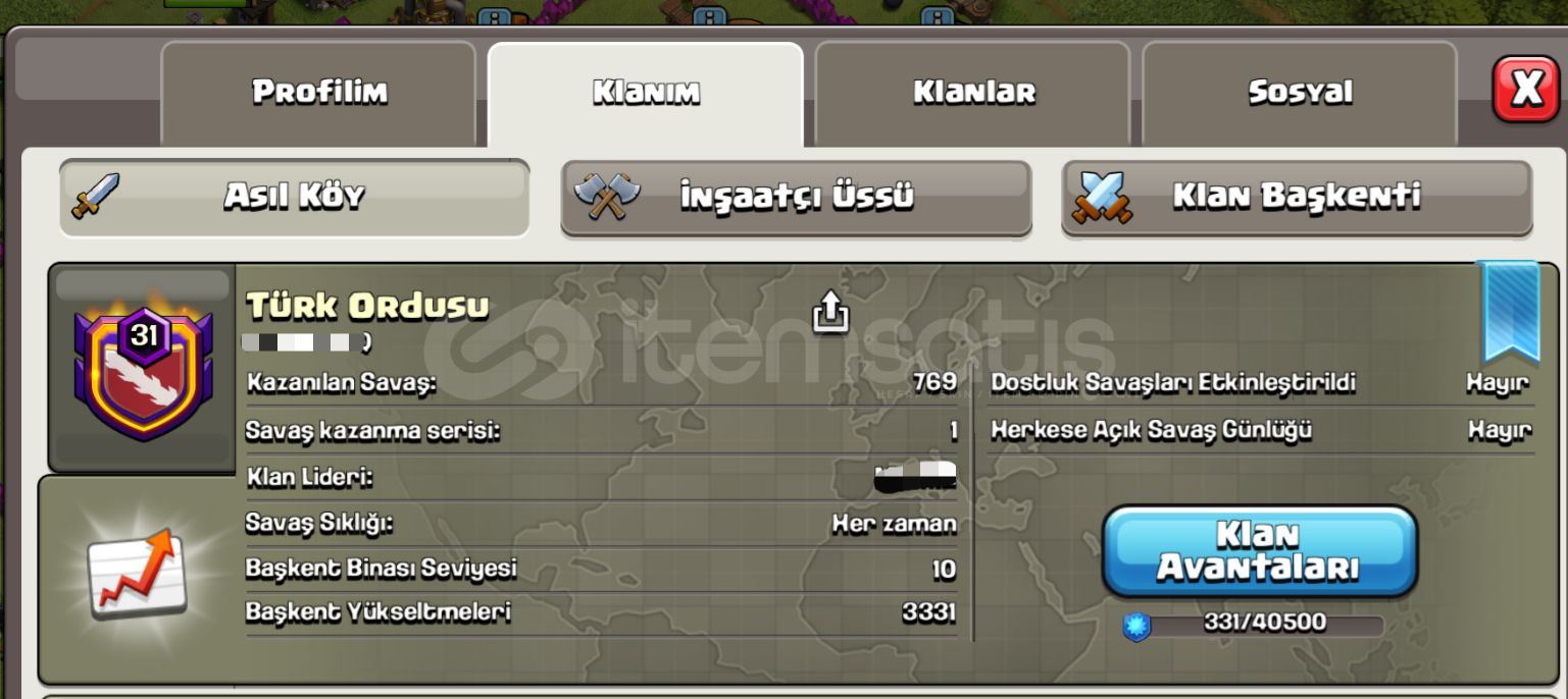 %100 MEMNUNİYET | 5DAKİKADA TESLİMAT10/10 DEĞERLENDİRME PUANIAÇIKLAMAYI LÜTFEN SONUNA KADAR OKUYUNUZ !HESABIN EK ÖZELLİKLERİ ⚡️ ✨31 LEVEL TÜRKİYEDE NADİR KLAN ✨• TÜRK ORDUSU İSMİ ÖZEL MUHTEŞEM KELİMESİ BİLE AZ• Eşi Benzeri Yok !• 10 YILLIK GEÇMİŞİ OLAN KLAN TÜRKİYENİN İLK KLANLARINDAN BİRİ...