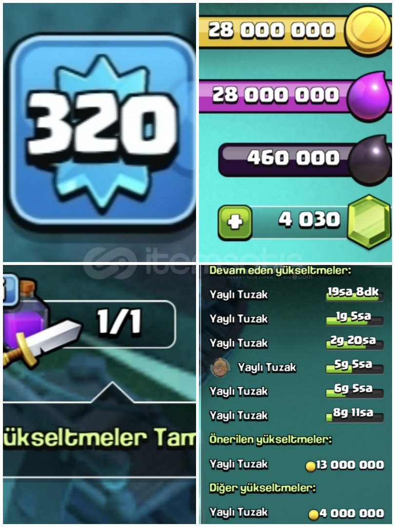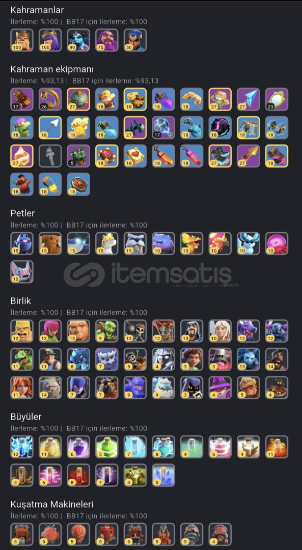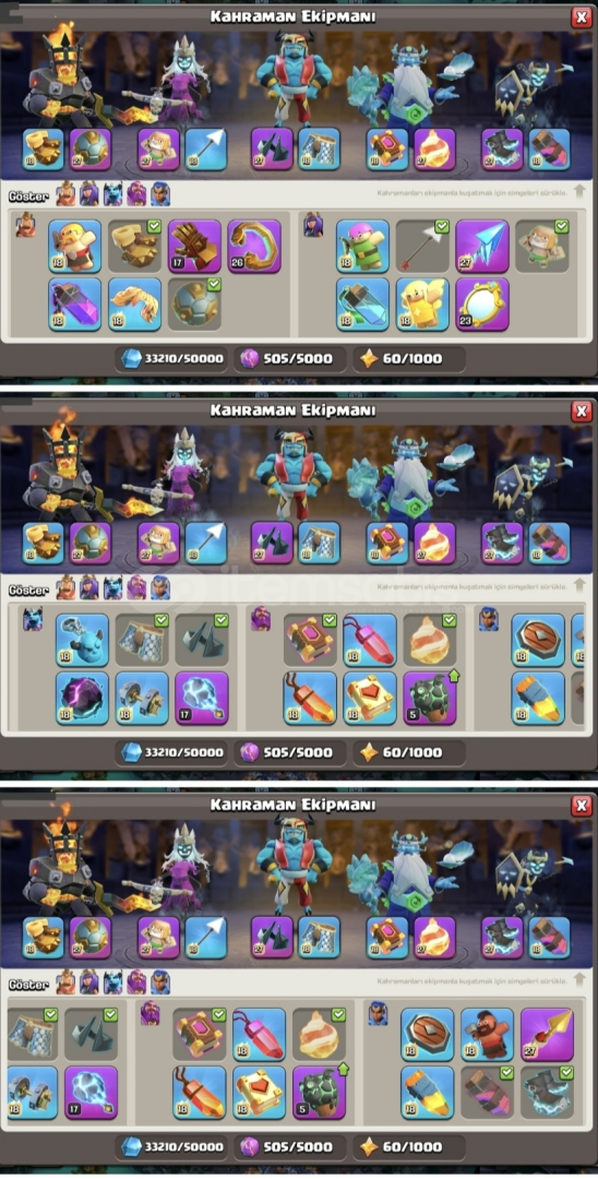 320 LEVEL / FUL 17 MAX KÖY / FUL DEMİRCİ HESAP 2.475 KS Yıldızı!320 Level Demirci full MAX4030 Yeşil TaşKöyde yükseltme yapılabilecek hiç bir şey kalmadı. Herşeyi ile Full MAX Ekstra hero kostümleri,Arka Planlar,lig madalyaları ve ekstra büyülü öğeler FULL olmak üzere resimlerde belirtilmiştir. Diğer ilanlar gibi Max deyip de, demircisi eksik veya k&o...