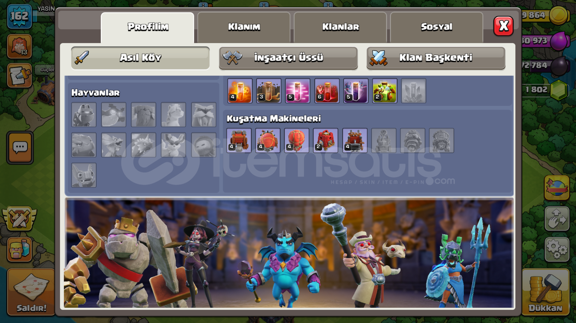 ALMADAN ÖNCE İLETİŞİM KURULMASI ÖNEM ARZ ETMEKTEDİRHESABIN ID : LUCJVYVQV DİR BURADAN BAKABİLİRSİNİZ.HESABIN SAVUNMALAR VE DUVARLAR FULLDÜR ALAN KİŞİ TH14 E DİREKT BASABİLİR (YENİ GELEN GÜNCELLEME İLE YAYLI TUZAKLAR KALMIŞTIR )HESAP ALININCAYA KADAR KASILMAYA DEVAM EDİLECEKTİRHESABIN 6. İNŞAATI AÇIKTIRBU AY Kİ ALTIN BİLET ALINMIŞTIRSON OLARA...