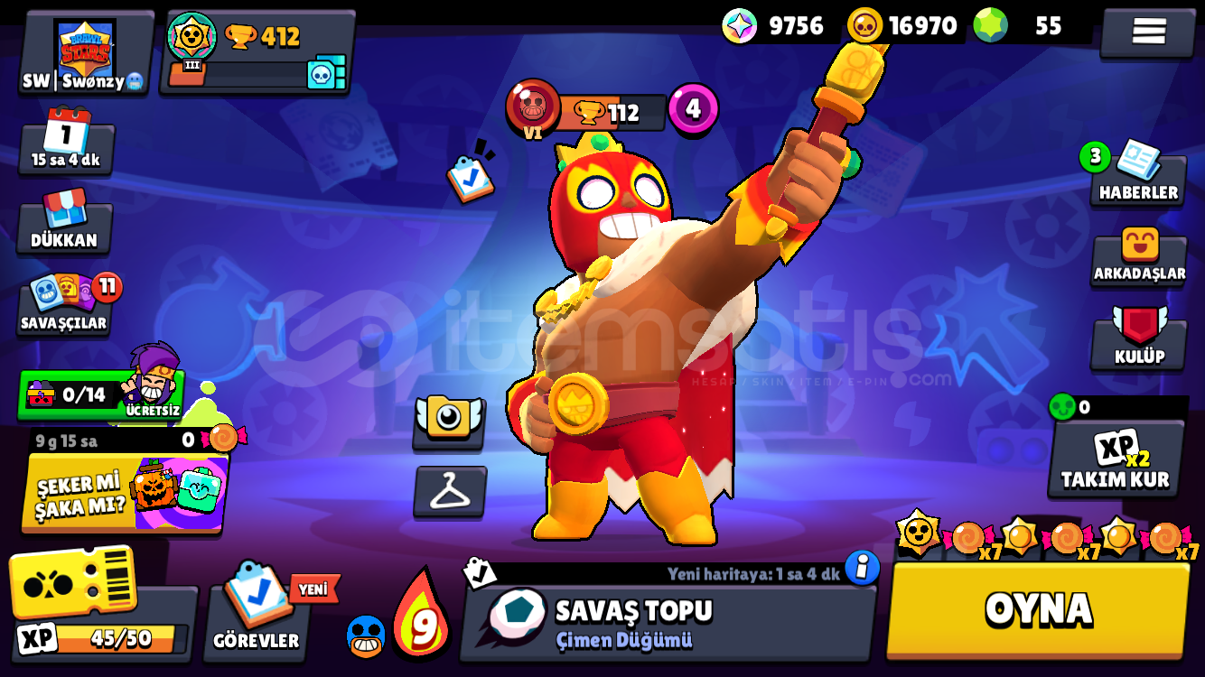 •OYUN İÇİN BAŞLANGIÇ HESAPLARI COCTA-5 M GANİMET-2500 e YAKIN MADALYA-6 BELEDİYEBSDE-16 KARAKTER 10 BİN MÜCEVHER 50 ELMAS-OYUNUN 300 TAŞLIK DEĞERLİ NİTA SKİNİ MEVCUTTUR-ÜCRETSİZ İSİM DEĞİŞİM HAKKIMAİL DEĞİŞİM YAPILIP TESLİM EDİLECEKTİR.
