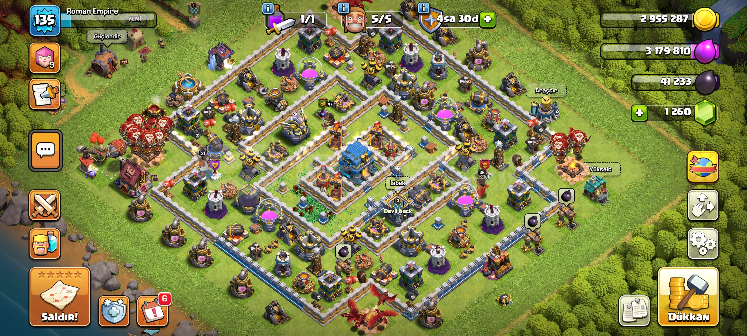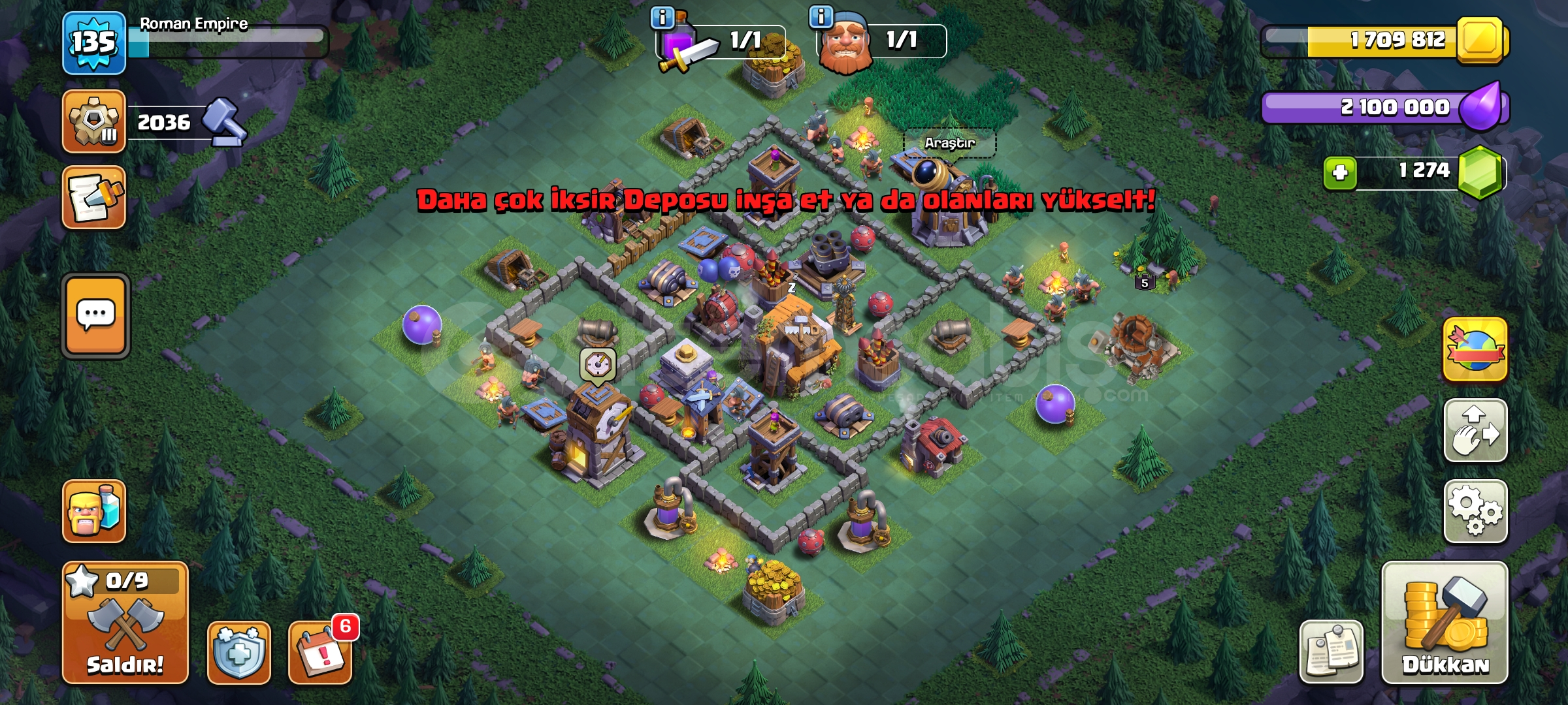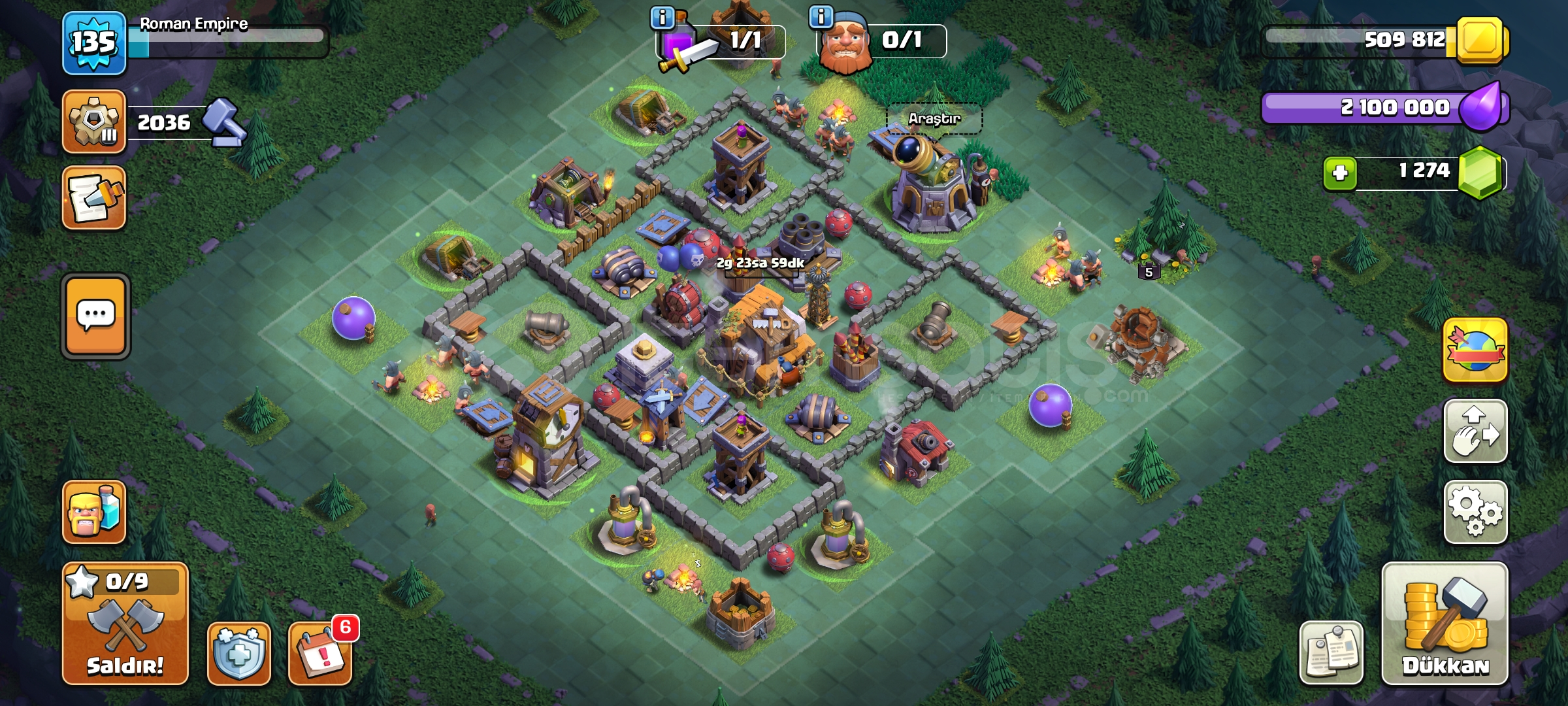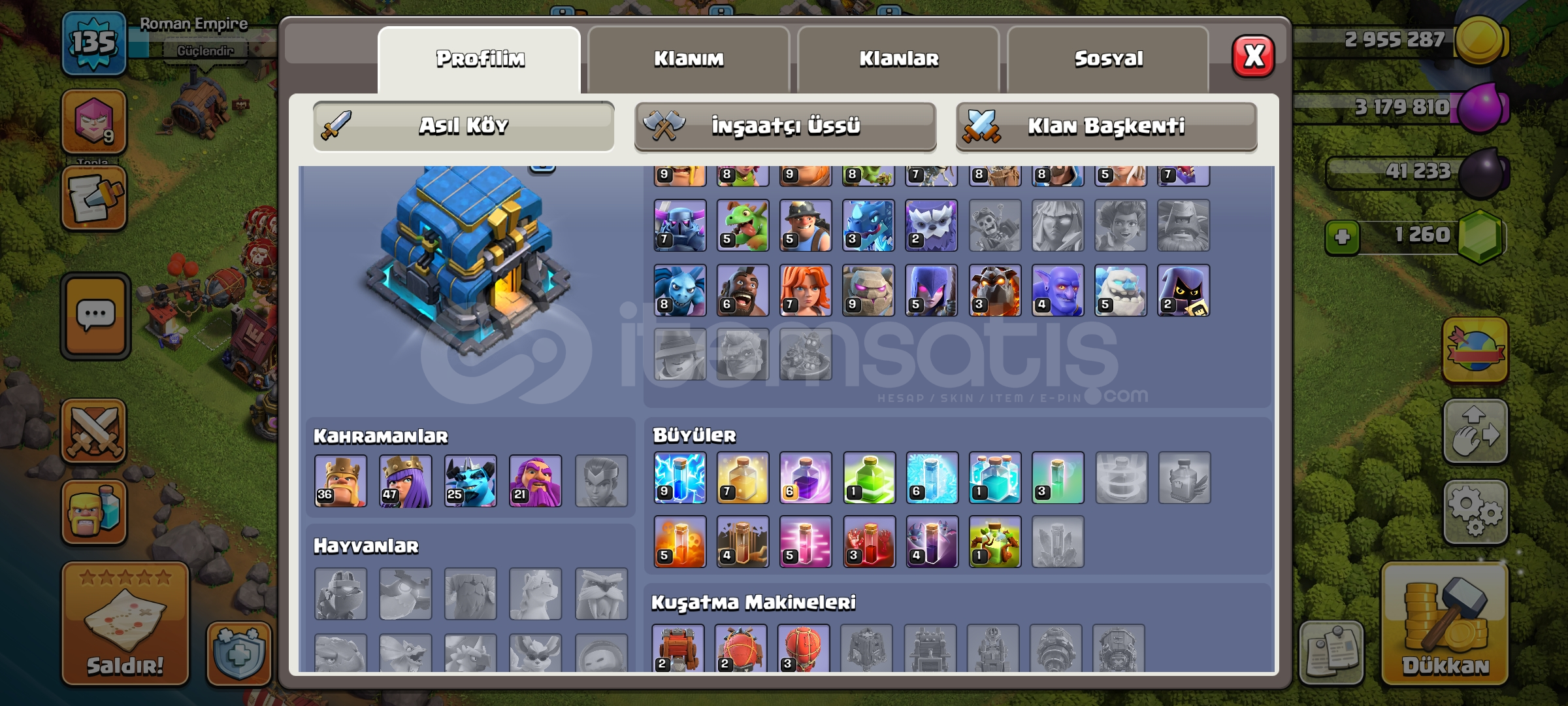 Hesap lig seviyesi okçu 9'dur7 skin vardır (1 efsanevi+6 altın)belediye binası seviyesi 12'dir1260 taş vardırHesap oto...