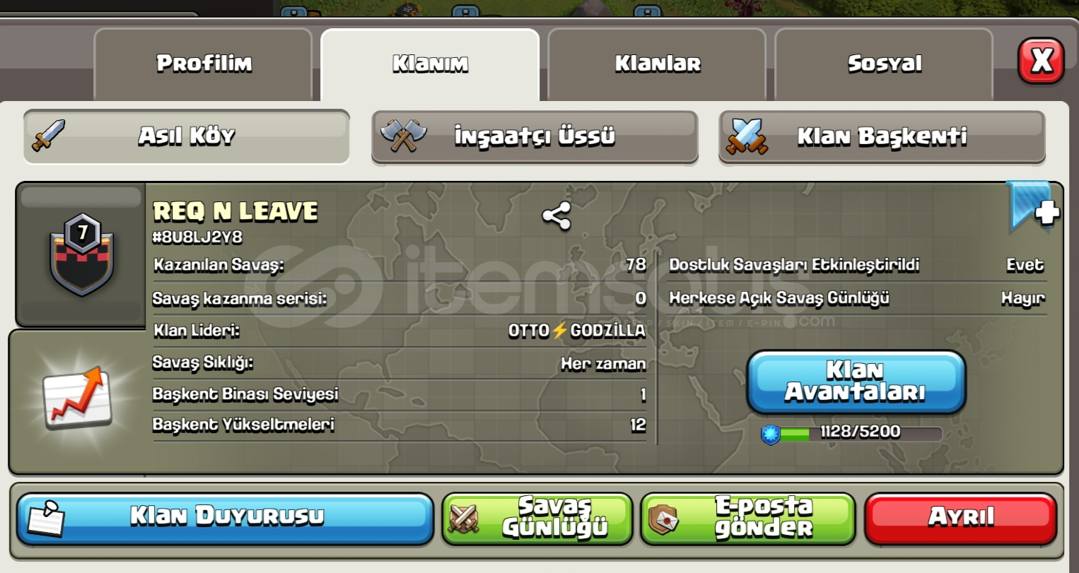 İlanı satın aldığınızda sohbet açınız ve satıcı ile iletişime geçiniz.Klan teslim sırasında ekran kaydı alınacaktır.
