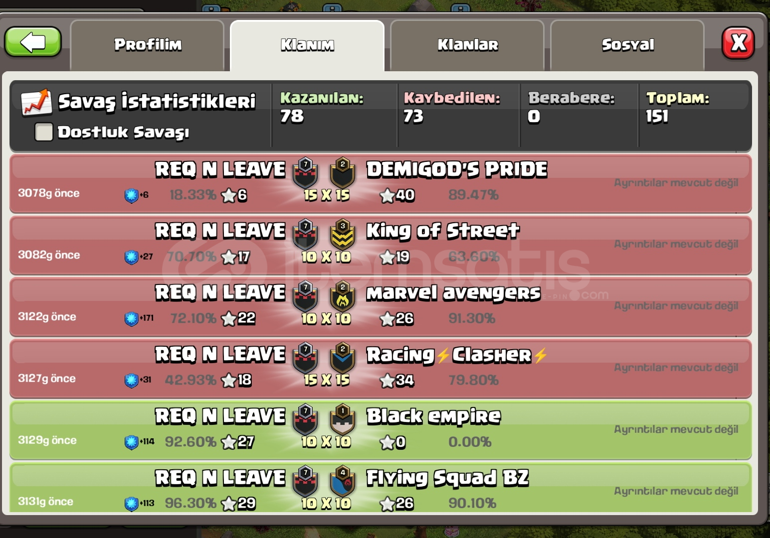Klan devir teslim işlemleri gün içinde teslim olunur.Klan satın alındıktan sonraki 0-6 saat içerisinde klanın teslimi yapılacaktır.Klanın teslimi yapıldıktan ve tüm işlemler hallolduktan sonra klanın tarafımızca bir sorumluluğu kalmamaktadır.Saat 24.00'dan itibaren yapılan işlemler sabah 08.00'dan sonra teslim edilir.Klanın tüm bilgilerine paylaşılmış ol...