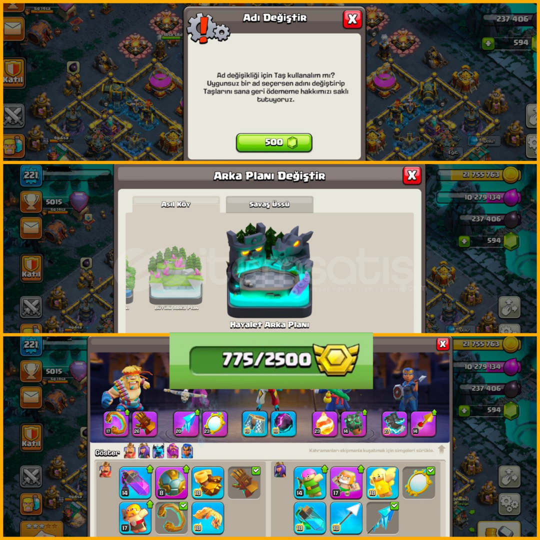 - HARİKA Hesaptır, Şimdiye Kadar Hesaba Girmiş Kim Varsa Herkesten Çıkış Yapacak Şekilde Sizin Vereceğiniz Maile Bağlanır.Detaylı Fotoğraf Ve Bilgi İçin İletişime Geçebilirsiniz.MAĞAZAMIZDA Kİ TÜM HESAPLAR İÇİN ÖMÜR BOYU GARANTİ!MAĞAZAMIZDA Kİ TÜM HESAPLARIN FİYATLARI SONDUR,Mağazamda Her Bütçeye Uygun Clash Of Cl...