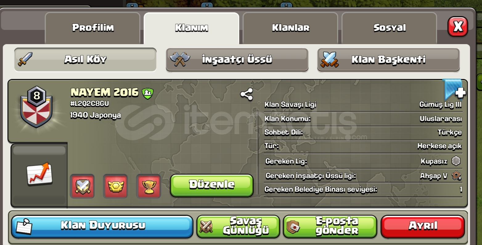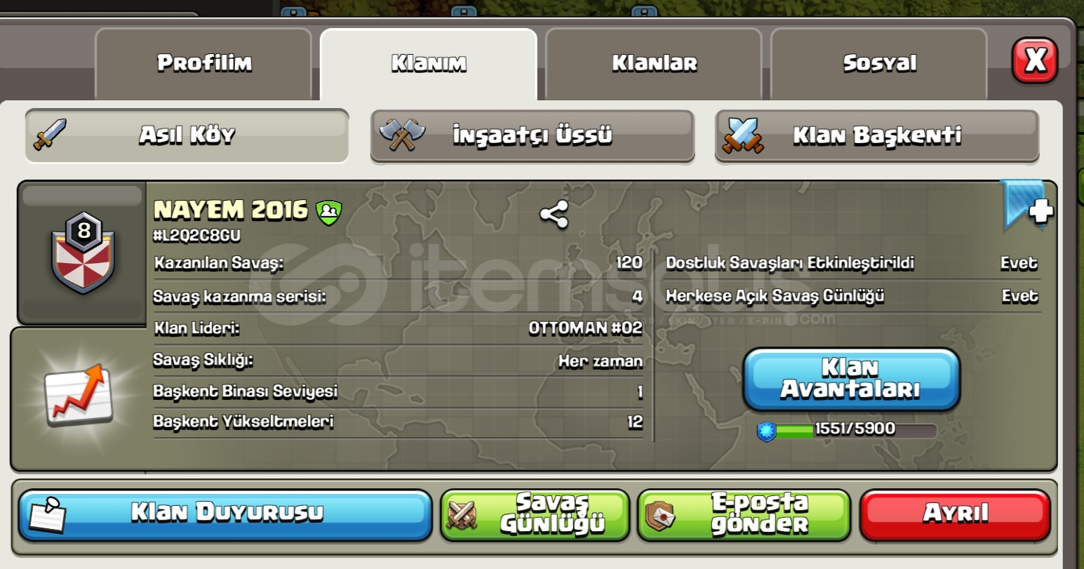 İlanı satın aldığınızda sohbet açınız ve satıcı ile iletişime geçiniz.Klan teslim sırasında ekran kaydı alınacaktır.