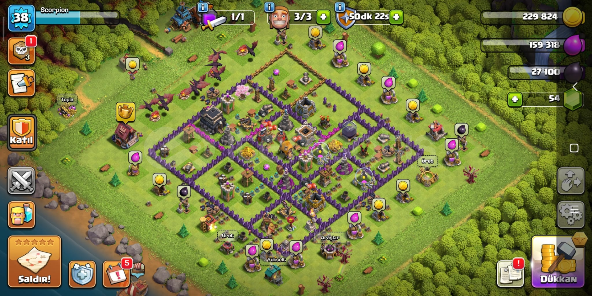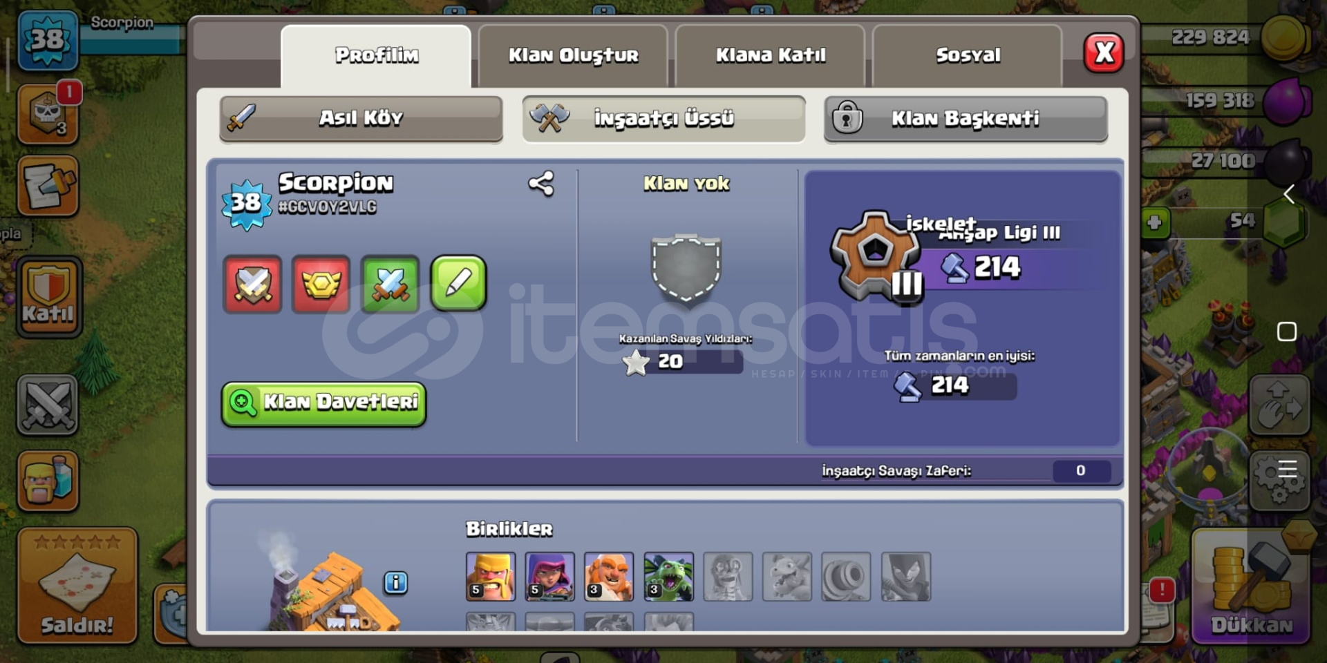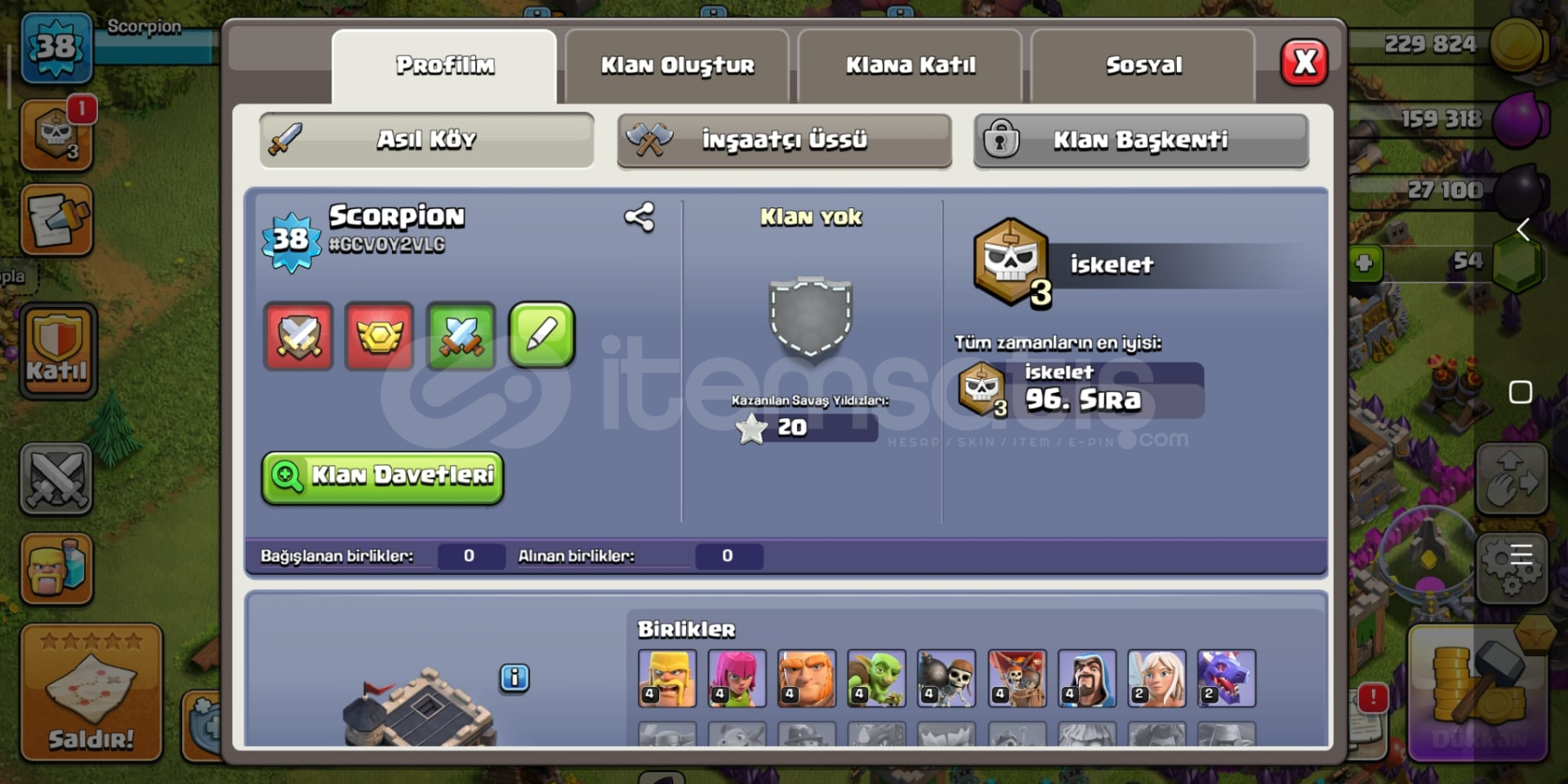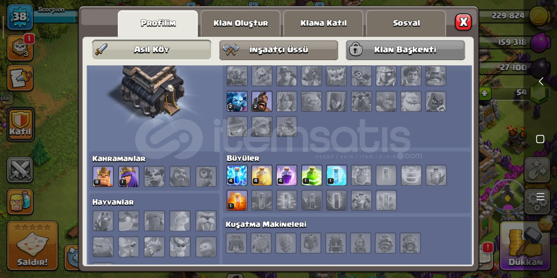 *38 Level*3 İnşaatçı*54 Yeşil Taş*Detaylar Resimlerdedir.*1 adet ücretsiz isim değiştirme hakkı vardır.*Supercell Bağlı değildir. Kendi hesabınızı bağlayabilirsiniz.