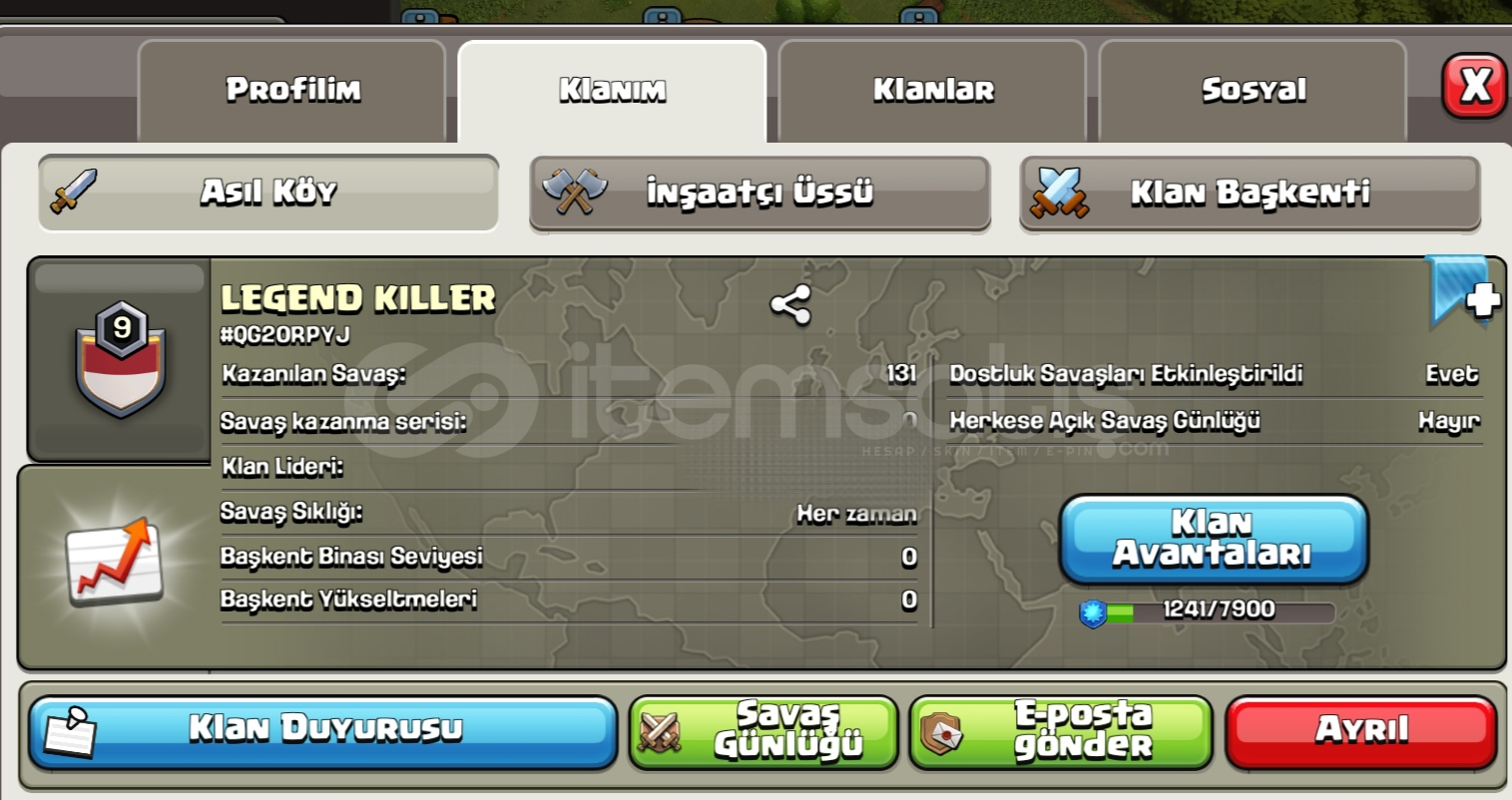 İlanı satın aldığınızda sohbet açınız ve satıcı ile iletişime geçiniz.Klan teslim sırasında ekran kaydı alınacaktır.
