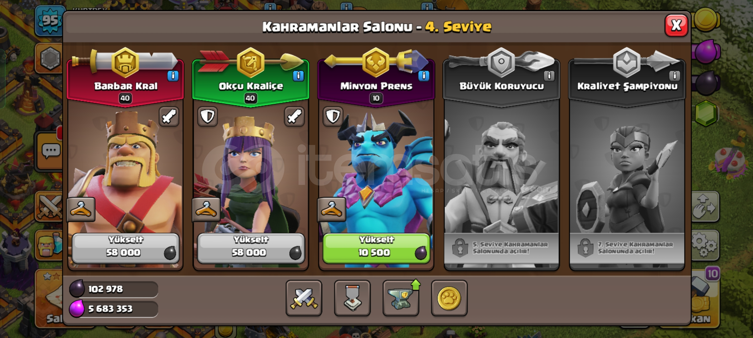 Okçu Kraliçe ve Barbar Kral 40 seviye. savaşcllar en yüksel seviyede hepsi.