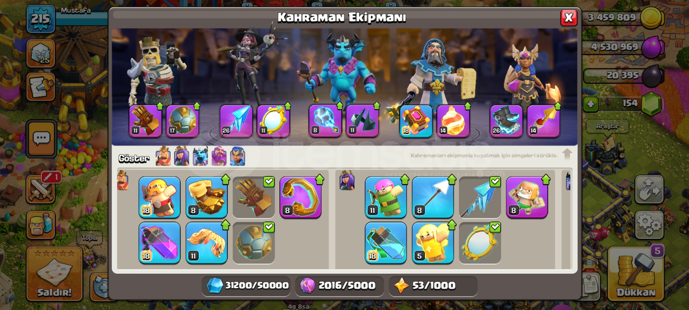 HESAPTA 1 ADET ARKA PLAN 8 ADEET KOSTÜM MEVCUTTURDEMİRCİDE DESTANSI EKİPMANLARDAN SADECE 1 TANE EKSİKTİR (AZİM MEŞALESİ)DUVARLAR MAX OLUP KÖY NERDEYSE YARI MAX DURUMDADIRMAİL DEĞİŞİMİ AKTİFTİRAKLINIZA YAKILAN SORULARI SORABİLİRSİNİZ