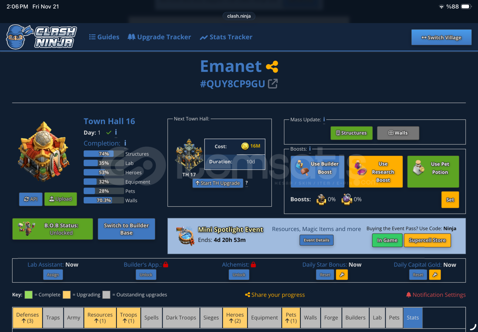 15 ten maks geçilmiș 16 savunmları nerdeyse bitmiștir hesapta sıkıntı çıkarcak bișey yoktur sınav dönemime denk gelmese hammer jamde 16 yı bitirir 17 ye basardım aynı șekilde derslerden vakit kalmadığı için normal fiyatının çok altında satıyorum alana șimdiden hayırlı olsun