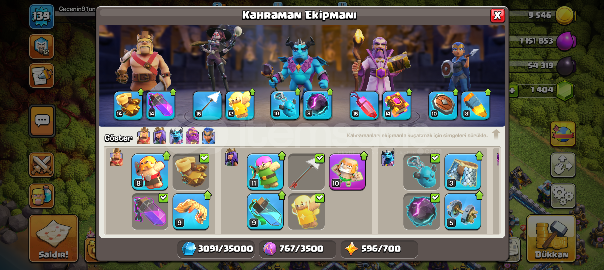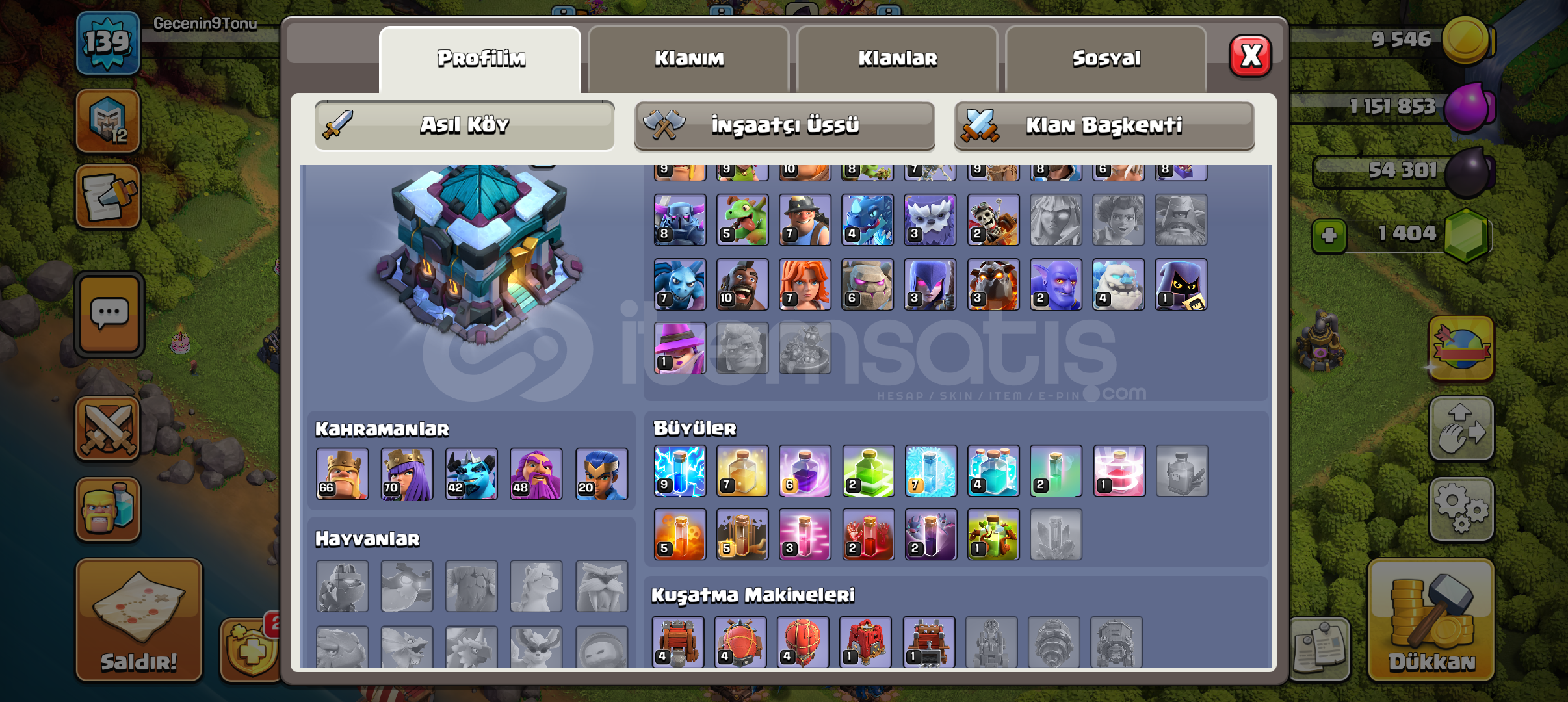 -PİYASAYA İNAT EN UCUZUNU EN KALİTELİSİNİ SİZE SUNMAYA DEVAM EDİYORUZ- -BELEDİYE 13 ÜÇ BEŞ DUVAR VE TUZAK HARİCİ MAX HESAPTIR -YUKSEK HERO SEVİYELERİ -YUKSEK BİRLİK SEVİYELERİ-AKTİF ALTIN BİLETLİ(Piyasa değeri şuan 300₺)-AKTİF OLARAK KASILMAYA DEVAM EDİYOR SİZ ALDIĞINIZDA DUVARLARI FALAN MAXLANMİS OLABİLİR.Hesap Fotoğraflarda...