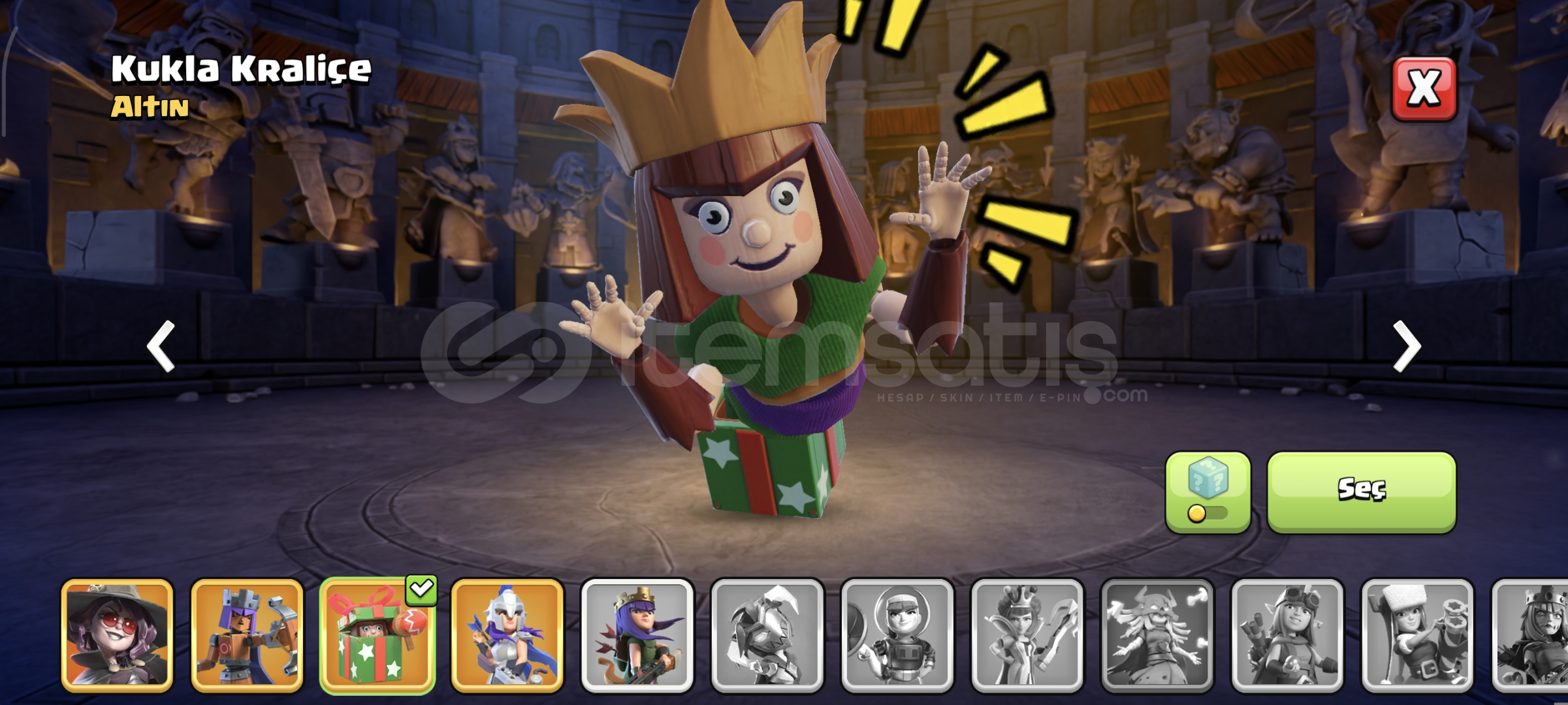 Oynamdığım için satıyorumAltın bilet aktiftirSavunmalar %80 maxtırHerolarda kostümler vardırOyunu Sizin e postaniza bağlıyorum