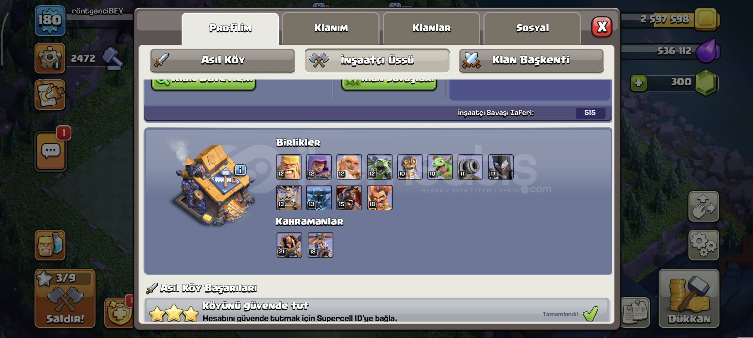 Oynamdığım için satıyorumAltın bilet aktiftirSavunmalar %80 maxtırHerolarda kostümler vardırOyunu Sizin...