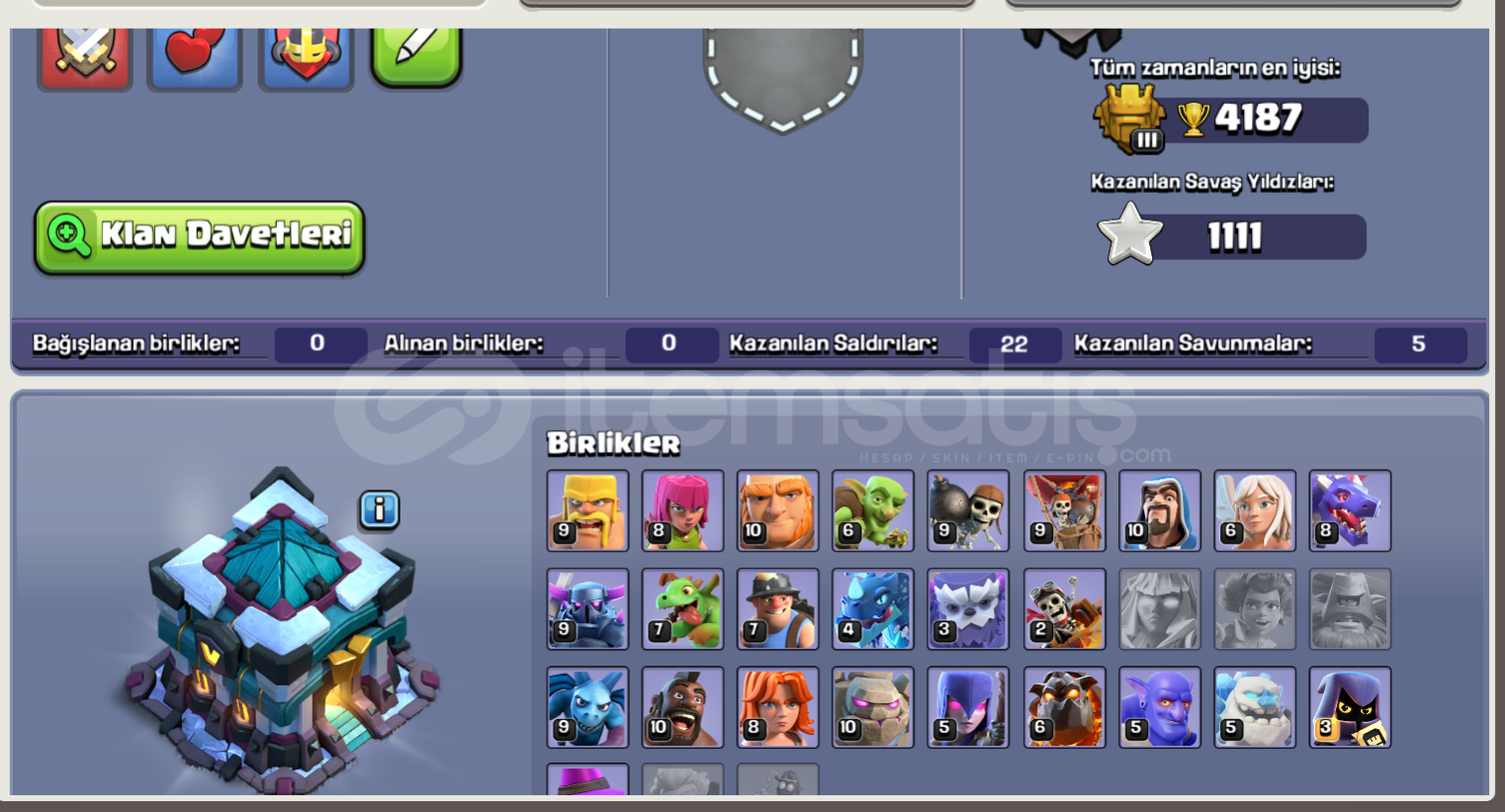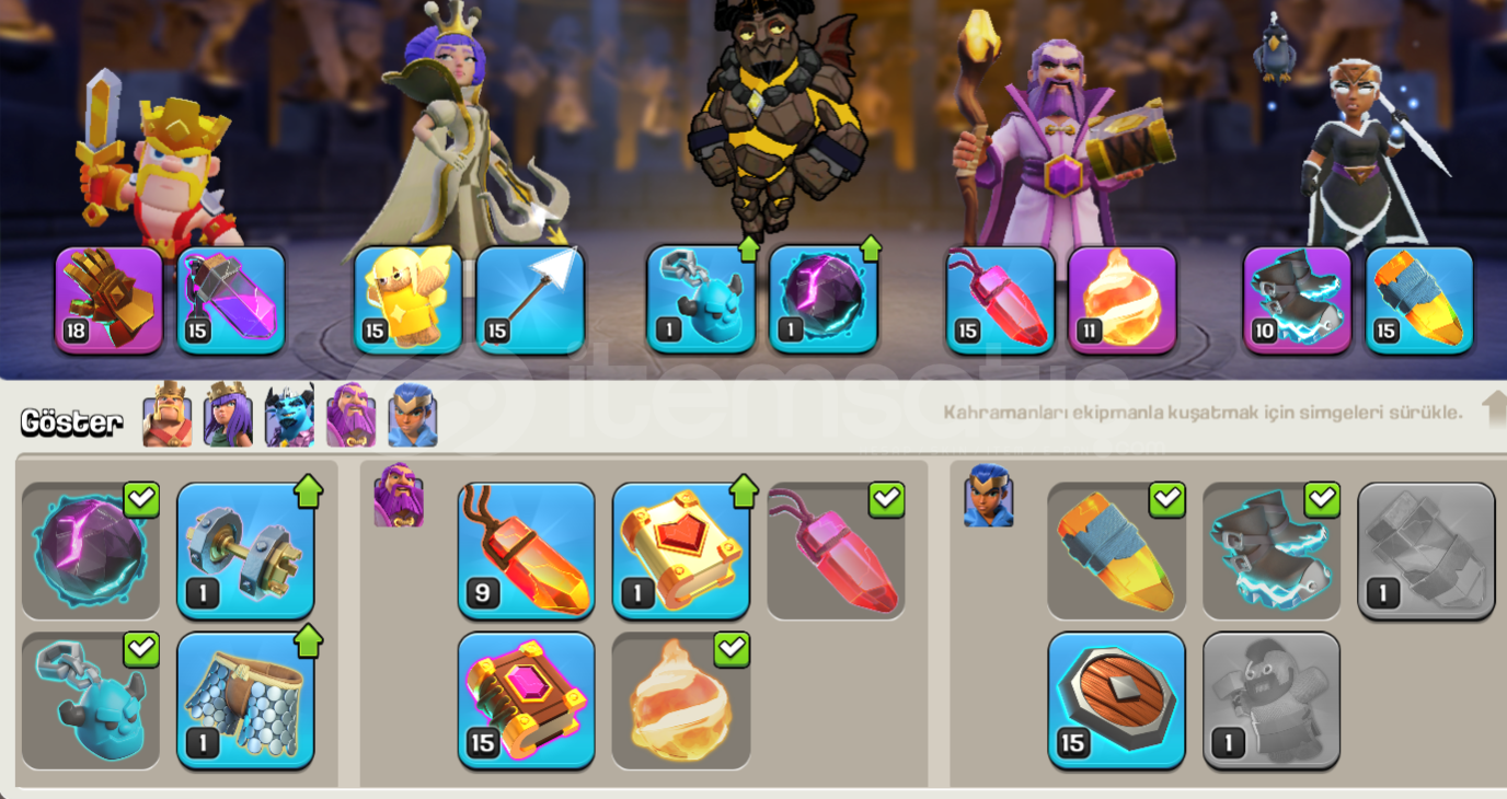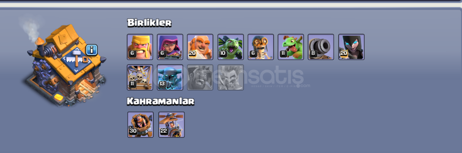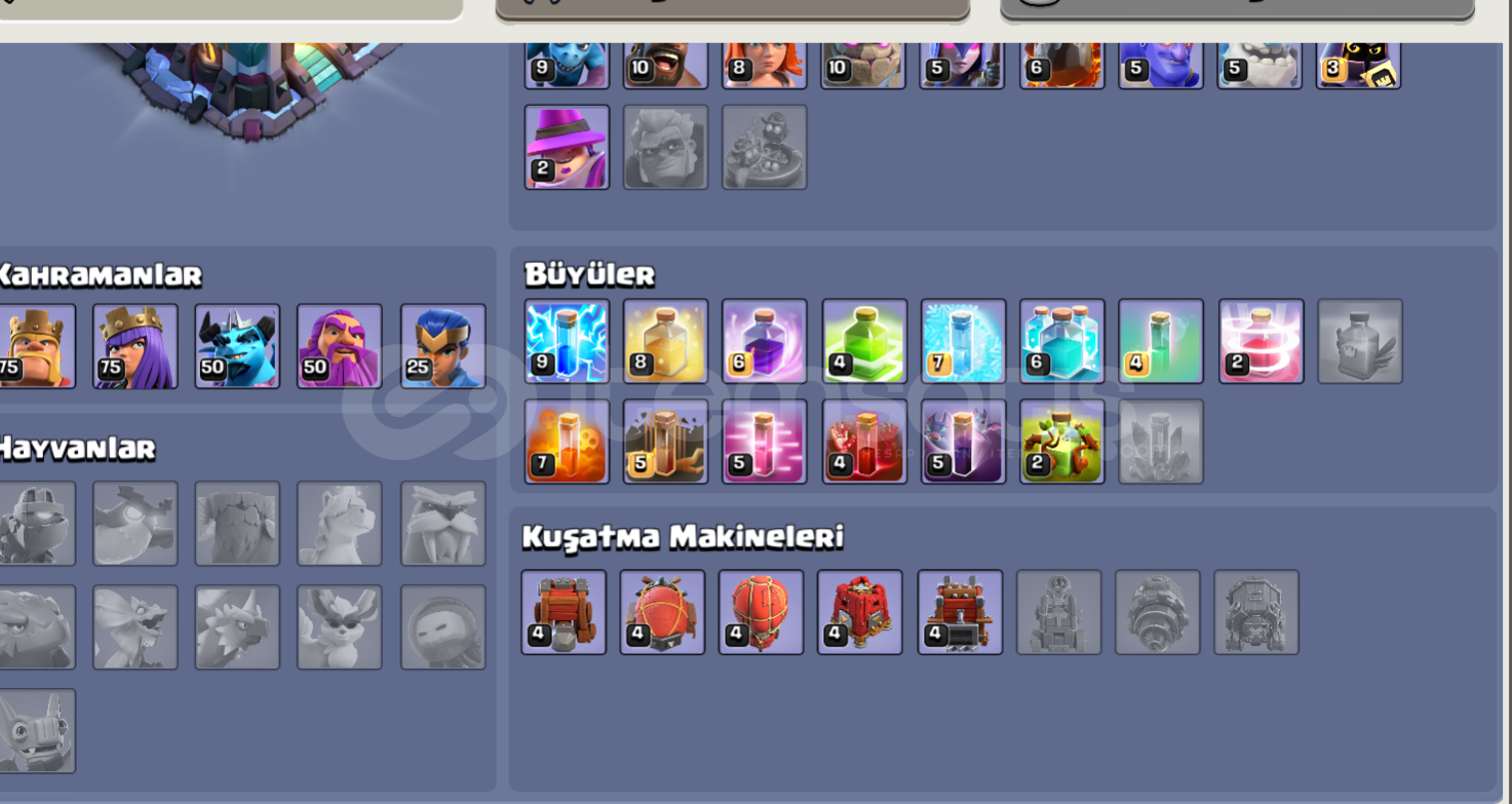 ⚡ Bütün herolar vb. tamamen maksimum seviyededir. ⚡ Bütün duvarlar maksimum seviyededir.⚡ Th14'e basılmaya hazır olup, içinde bütün rümler ve iksirler vardır.⚡ +1000 lig madalyası vardır.⚡ 2 İnşaat, 1 Kahramanlar çekici vardır.⚡ Kahramanlarda skinler boldur.⚡ Hesapta koruma yoktur. Direkt olarak supercell id'den üzerinize yapılır.⚡ Hesap kü&...