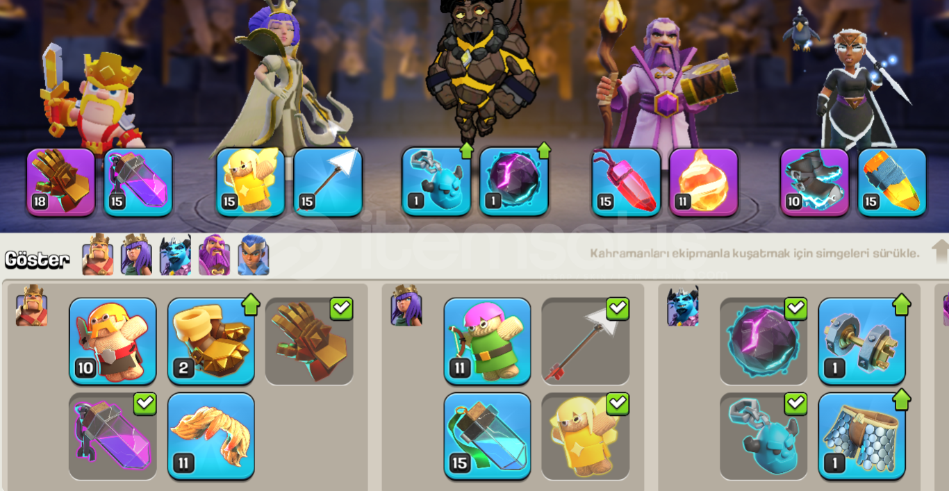 ⚡ Kahramanlarda skinler boldur.