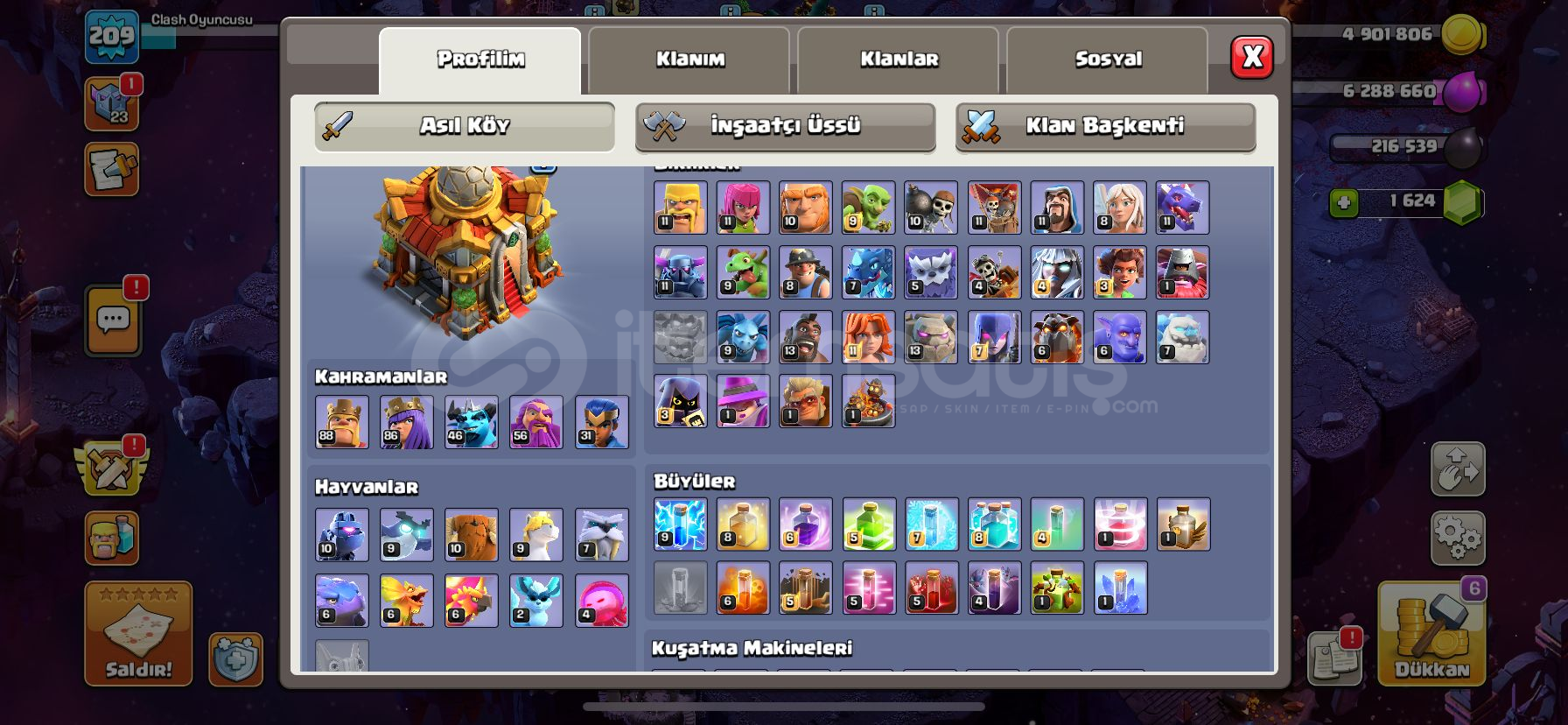 TH16 MAKS ARKA PLANLISAĞLAM DEMİRCİLİSAĞLAM HERO LVLLİYANINDA HEDİYE48 LVL 10000 KUPA 7 EVRİM CRKORUMASIZ HESAP