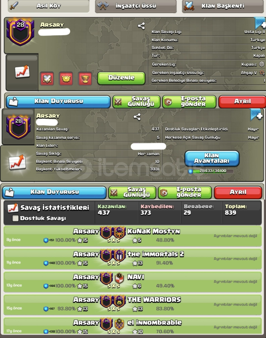 🔥 28.7 Seviye Arsary 🔥‼️ Başkent Max ‼️🌿Usta 2 Ligi'nde 🌿✨Temiz günlük ✨ 👉🏻 Sadece 4.500 👈🏻