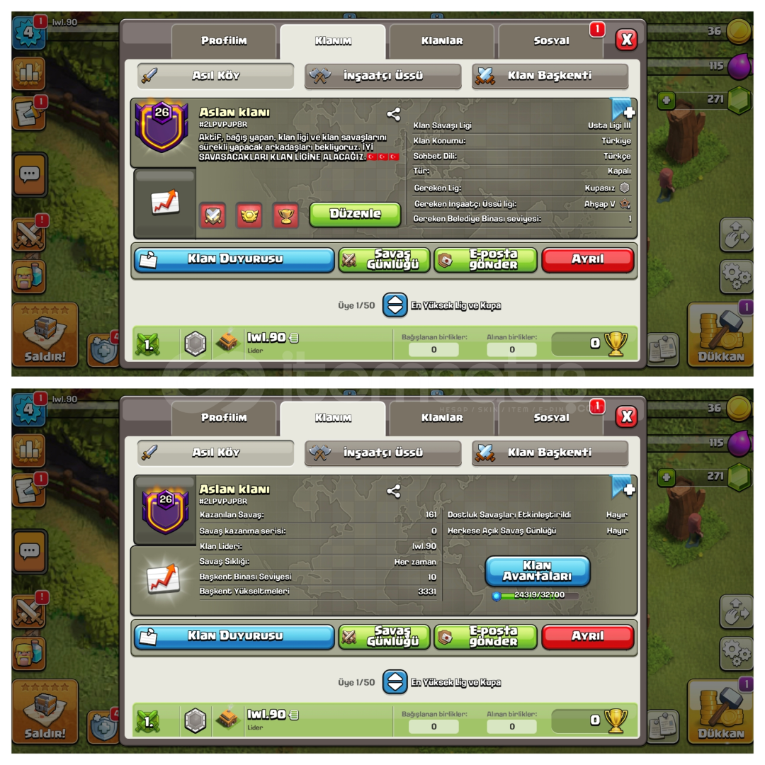 10/10 DEĞERLENDİRME PUANIAÇIKLAMAYI LÜTFEN SONUNA KADAR OKUYUNUZ !HESABIN EK ÖZELLİKLERİ ⚡️ ✨ 27 AZ KALMIŞ• Aslan klanl• Eşi Benzeri Yok !• Harika Savaş Günlüğü• Usta Ligi lll• Başkent Seviyesi 10• Başkent Yükseltmes 3331• Alıcısına Hayırlı Olsun- Her Zaman En İyi Şekilde Hizmet Vermeye Çalışıyoruz. ...