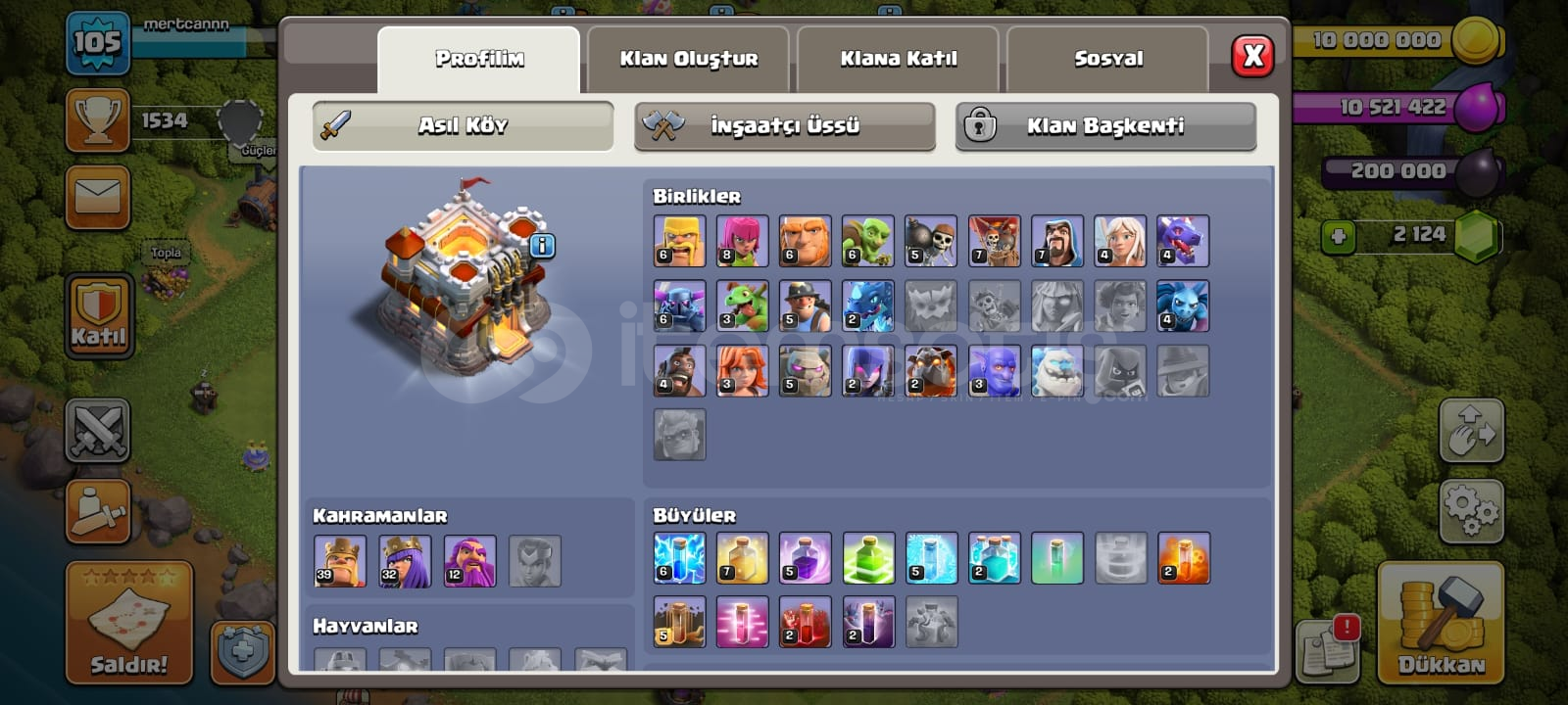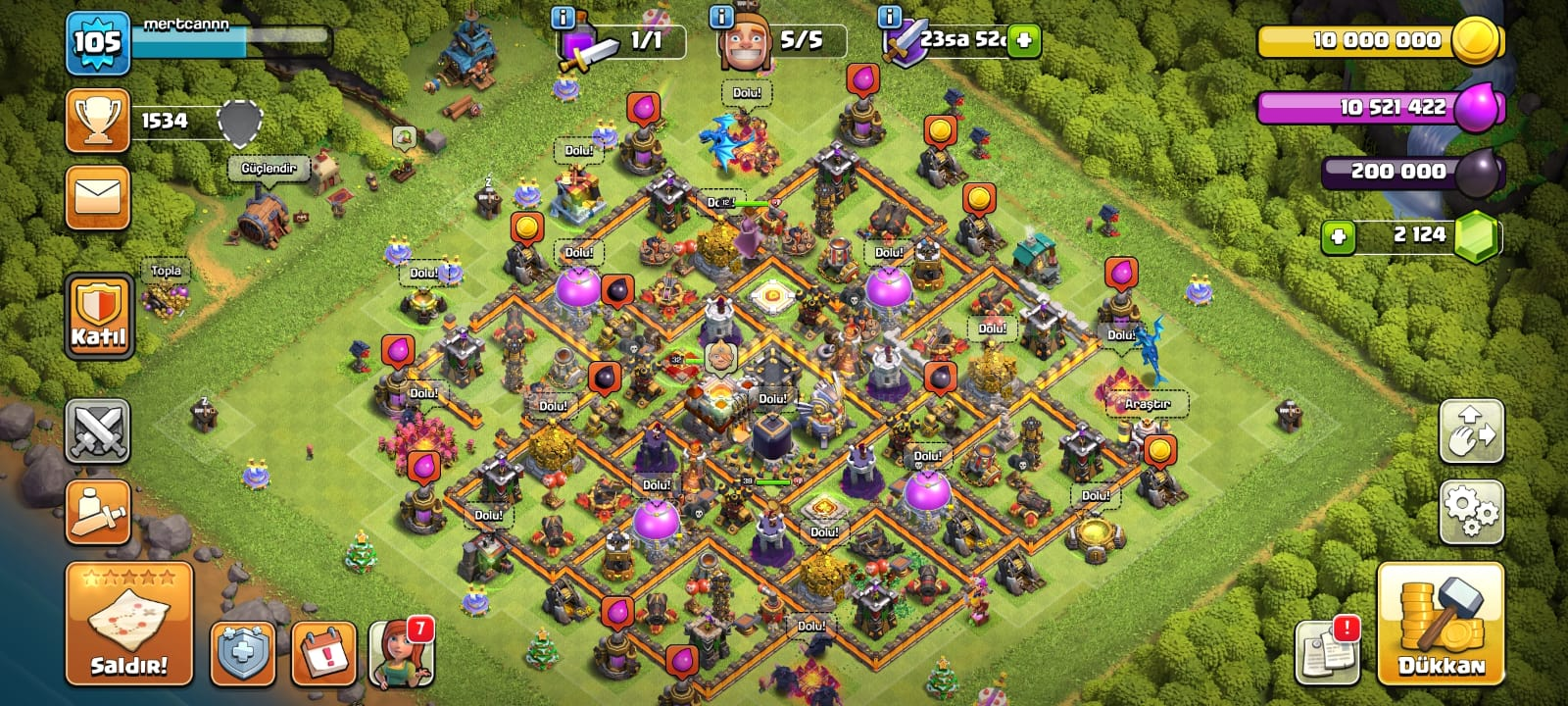 BB 11, İksirler Full, Karakterlerin seviyesi yüksek105 Level, 2124 Elmas, 5 İnşaatçı