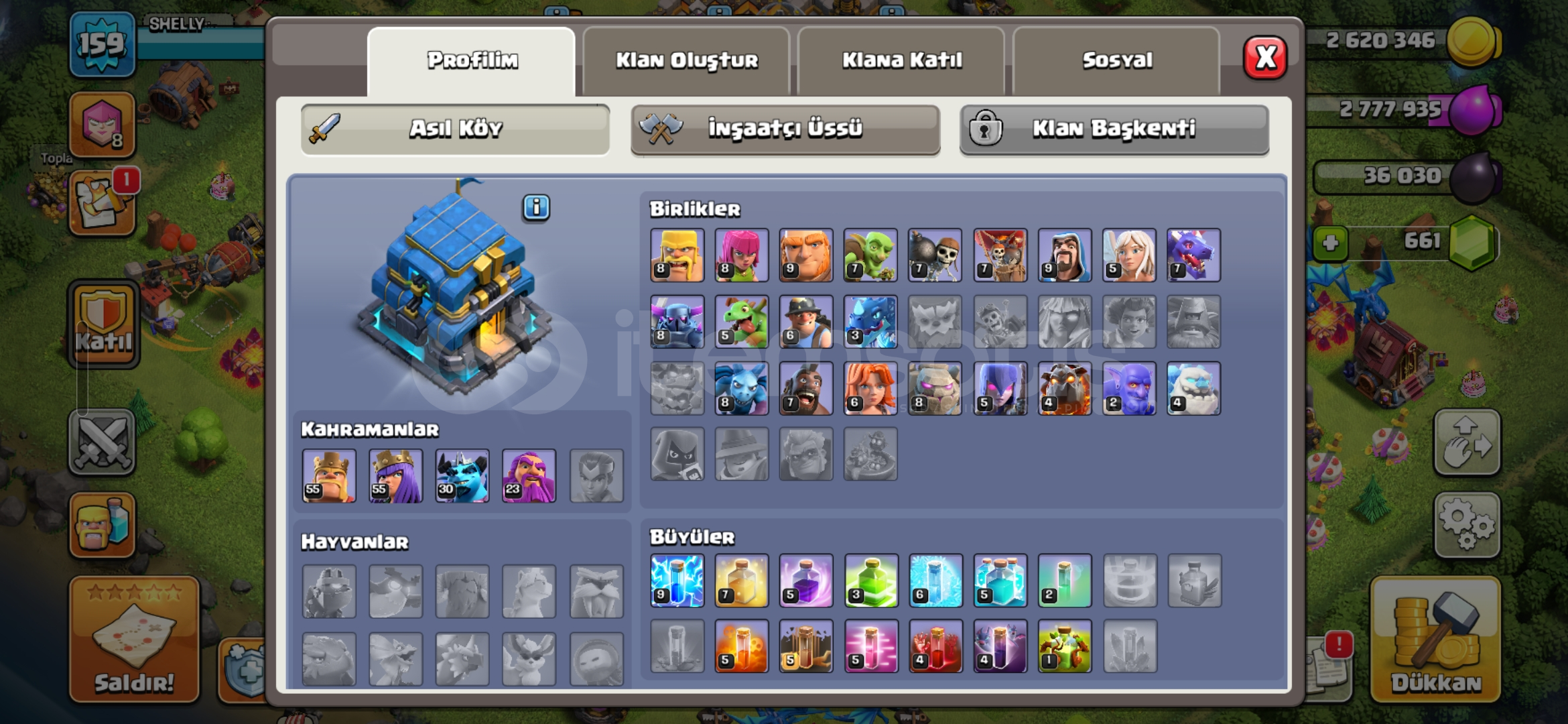 Merhaba hesap belediye binası 12 ye yeni geçmiş bir hesap sıfırdan başlamak istemeyen ama canı clash of clans oynamak isteyen biriysen hesap sana göre olabilir hesapta sadece 1 kostüm bulunmakta büyülü envanter yok 1 tane inşaat kitabı var yeni sahibine iyi eğlenceler dilerim