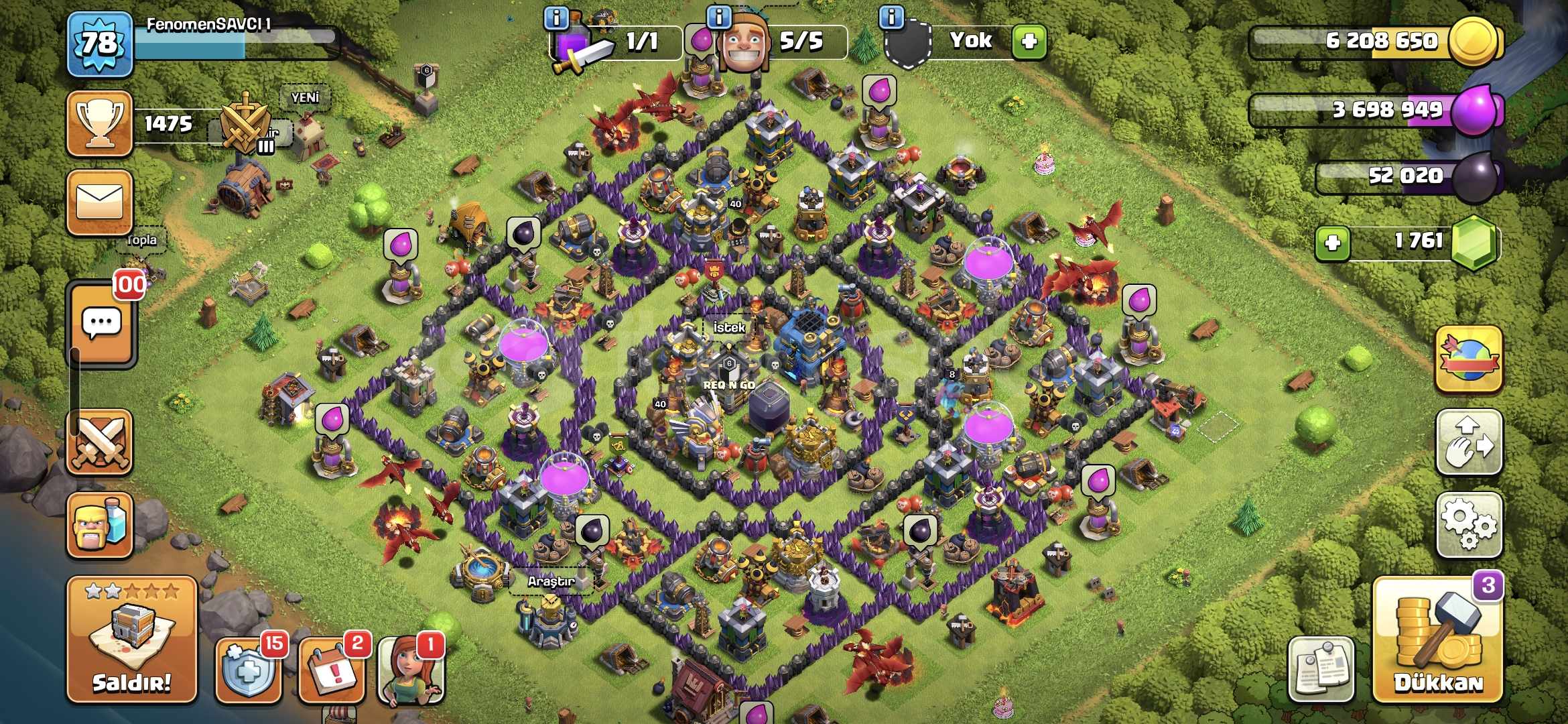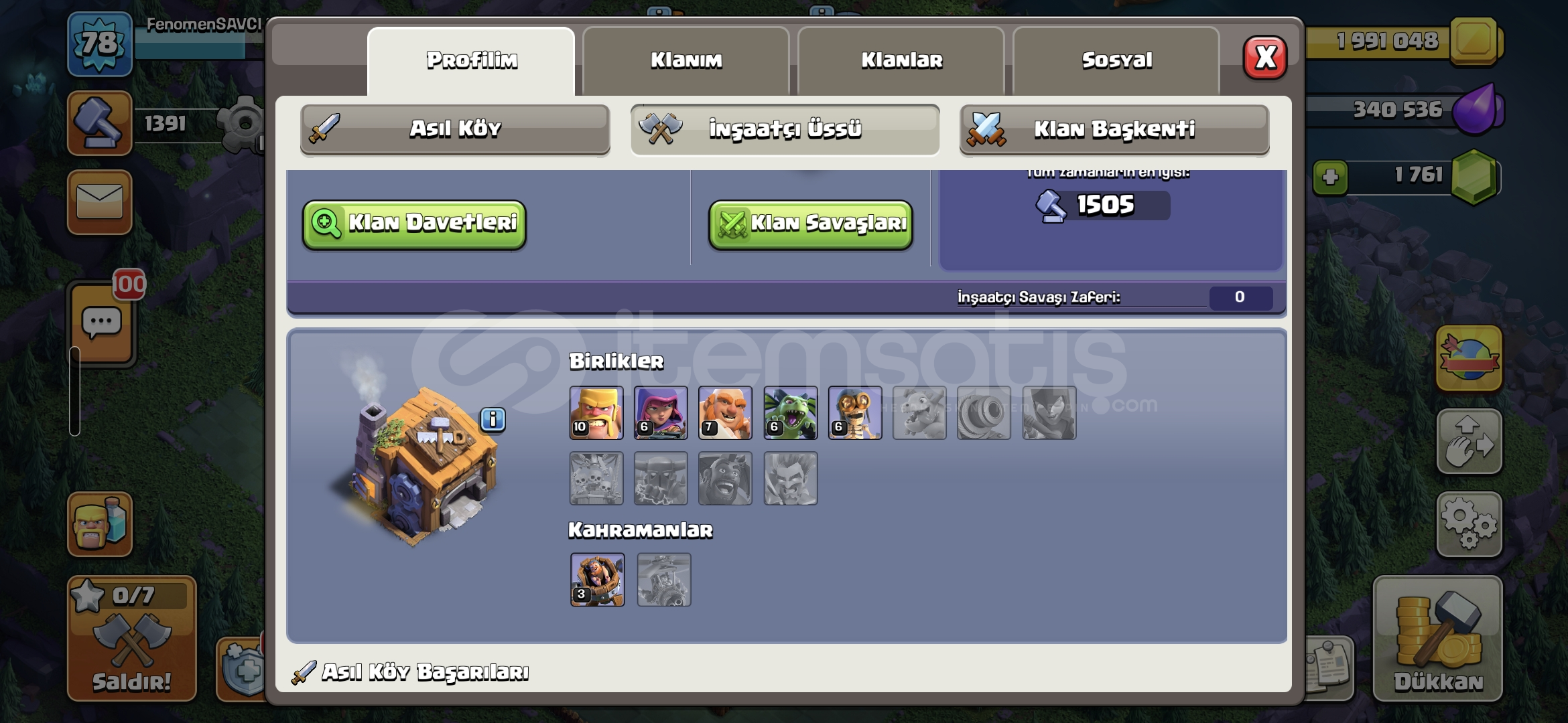 Bb:12Seviye:78Kahramanların seviyesi Barbar kral:40 seviyeOkçu kraliçe:40 Seviye Koruyucu:7 Seviye Minyon prens:8 Seviye İnşaatçı üssü bb:6 Seviye Savaş makinasi:3 Seviye Köy erken basılmıştır ama oynamaya engel değildir alıcısına şimdiden hayırlı olsun